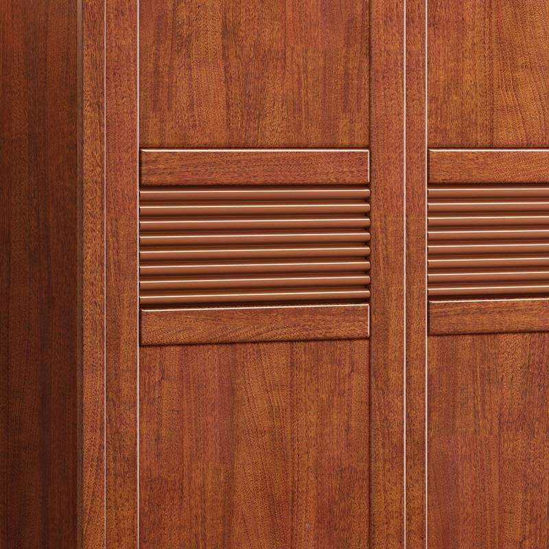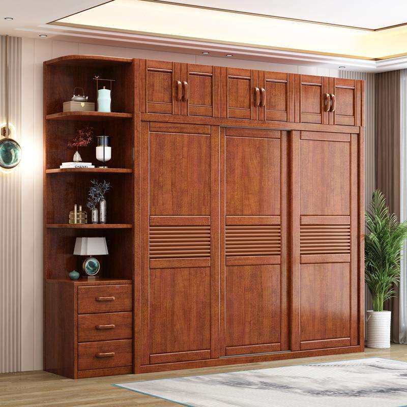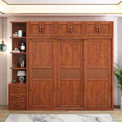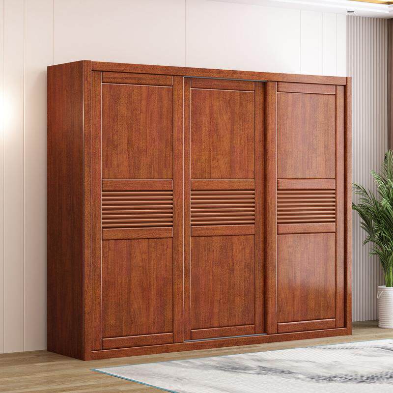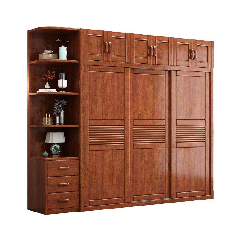 现代中式胡桃木推拉门实木衣柜衣卧柜室简约子整体滑移门90454合