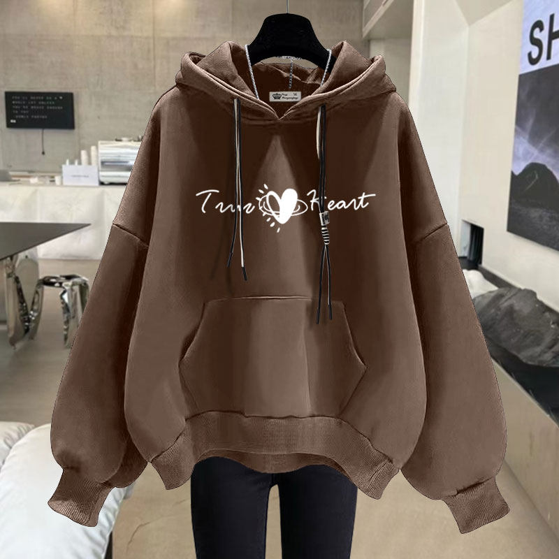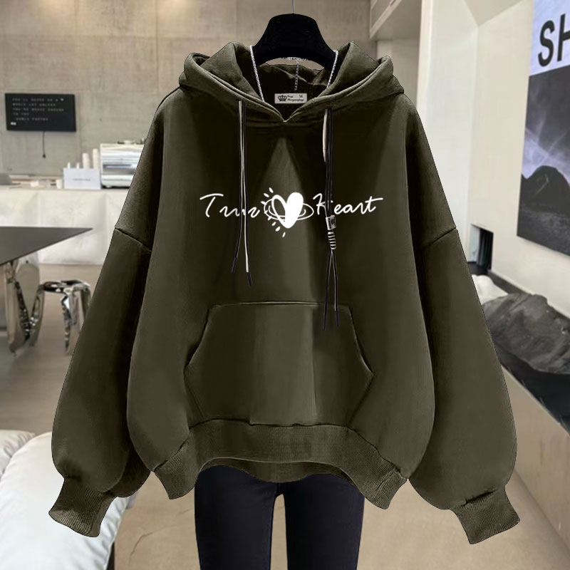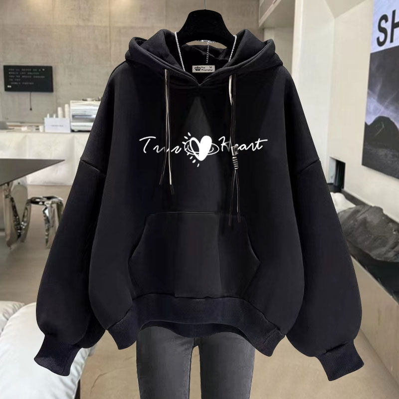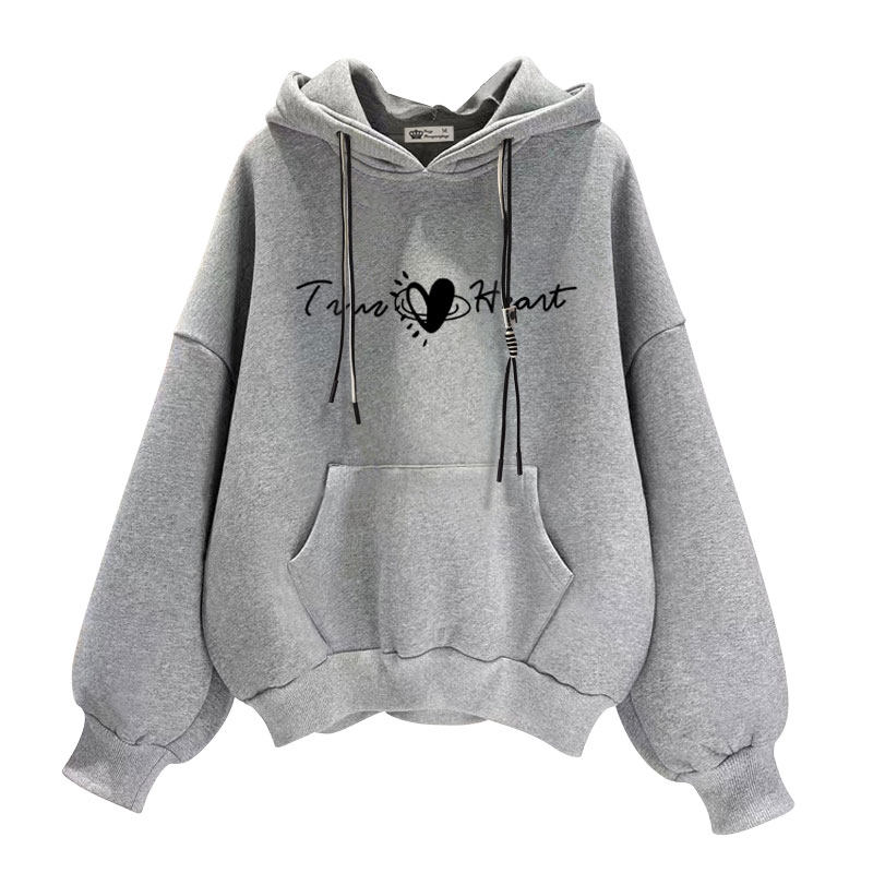 加绒宽松休闲爱心字母连帽卫衣女
