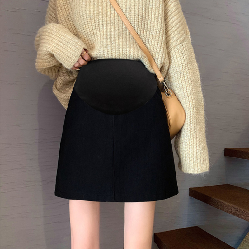 黑色孕妇毛呢包臀短裙春秋冬季2025新款孕期显瘦A字托腹半身裙子