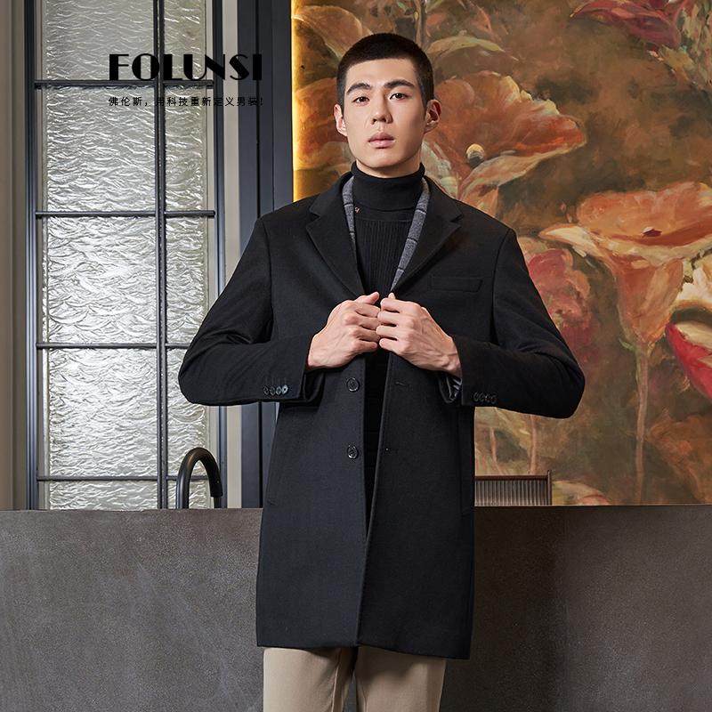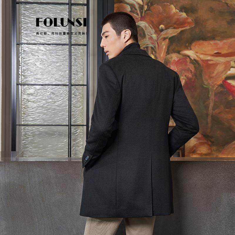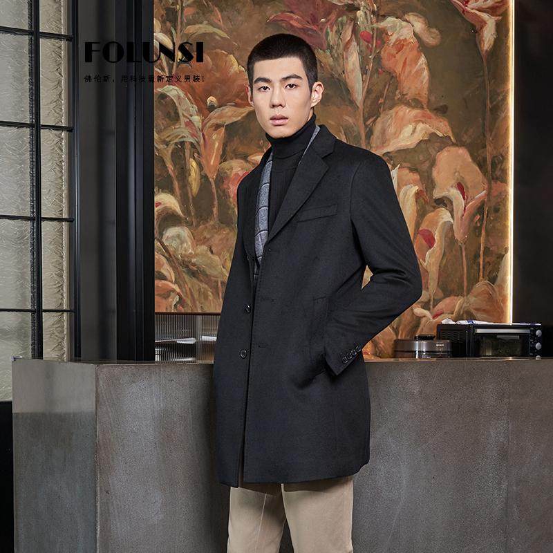 佛伦斯FOLUNSI男装大衣外套男山羊绒秋冬款高端男士商务休闲上衣