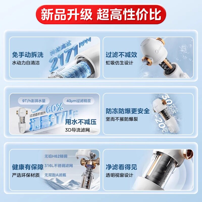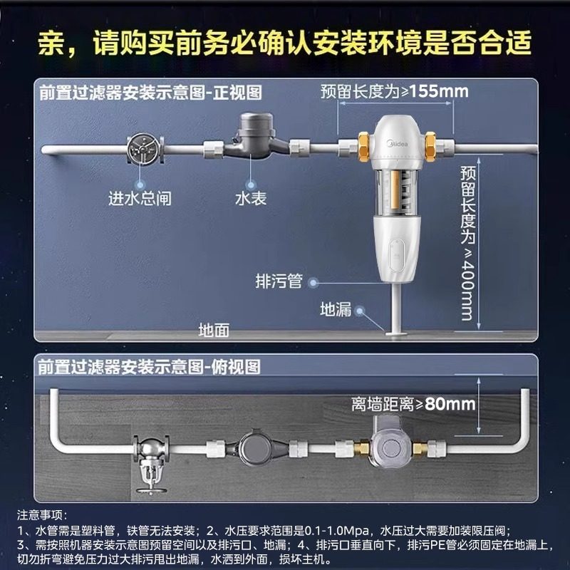 美的前置过滤器全屋自来水家用反冲洗饮水机中央净水器-48/-100