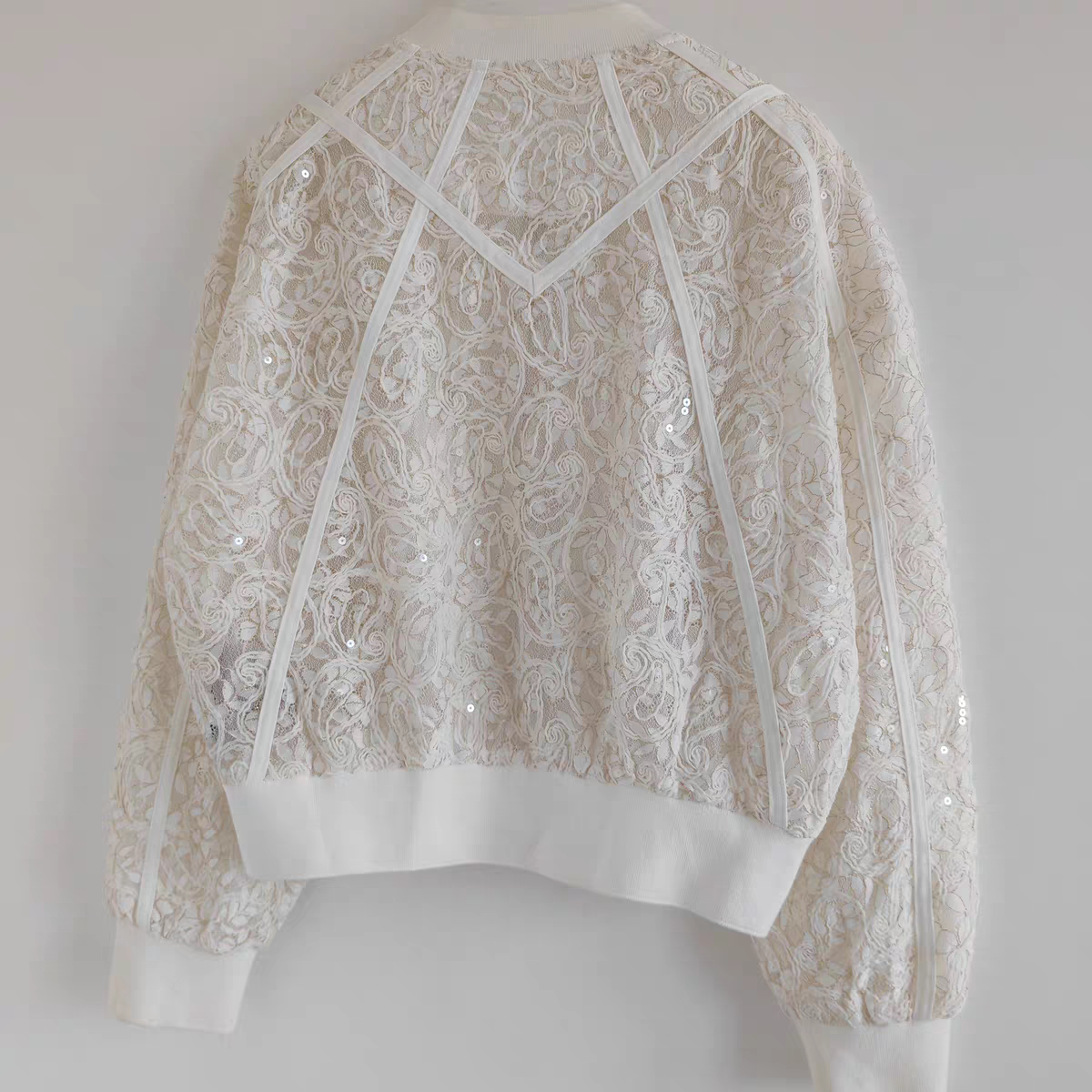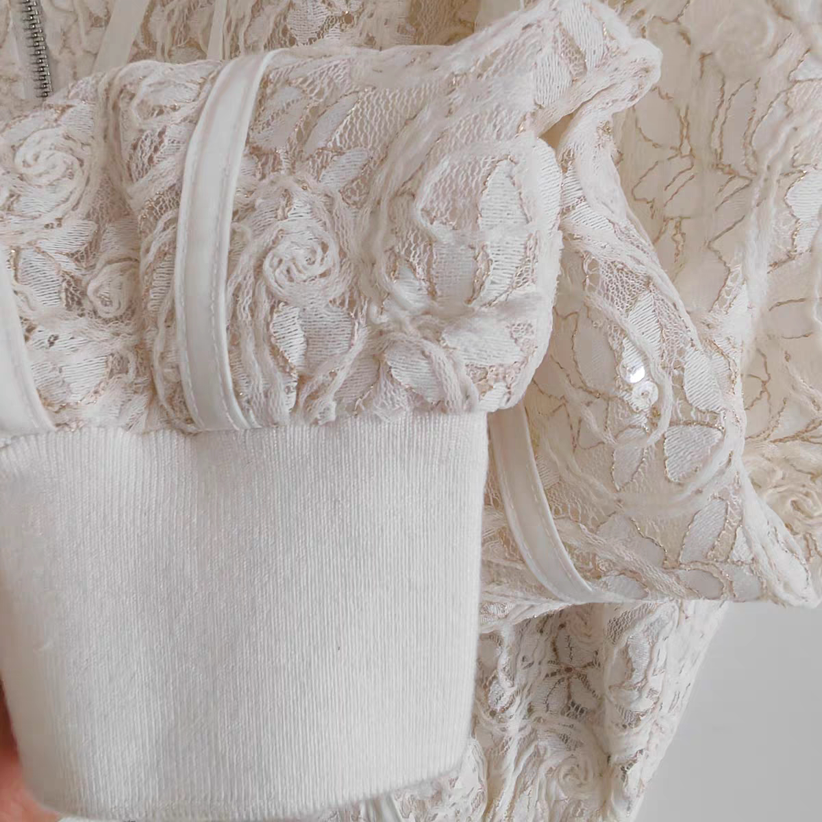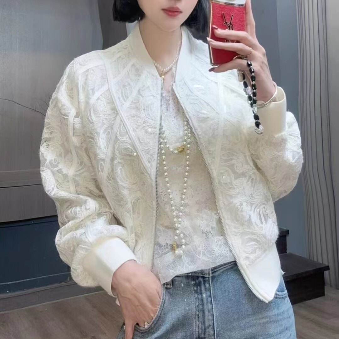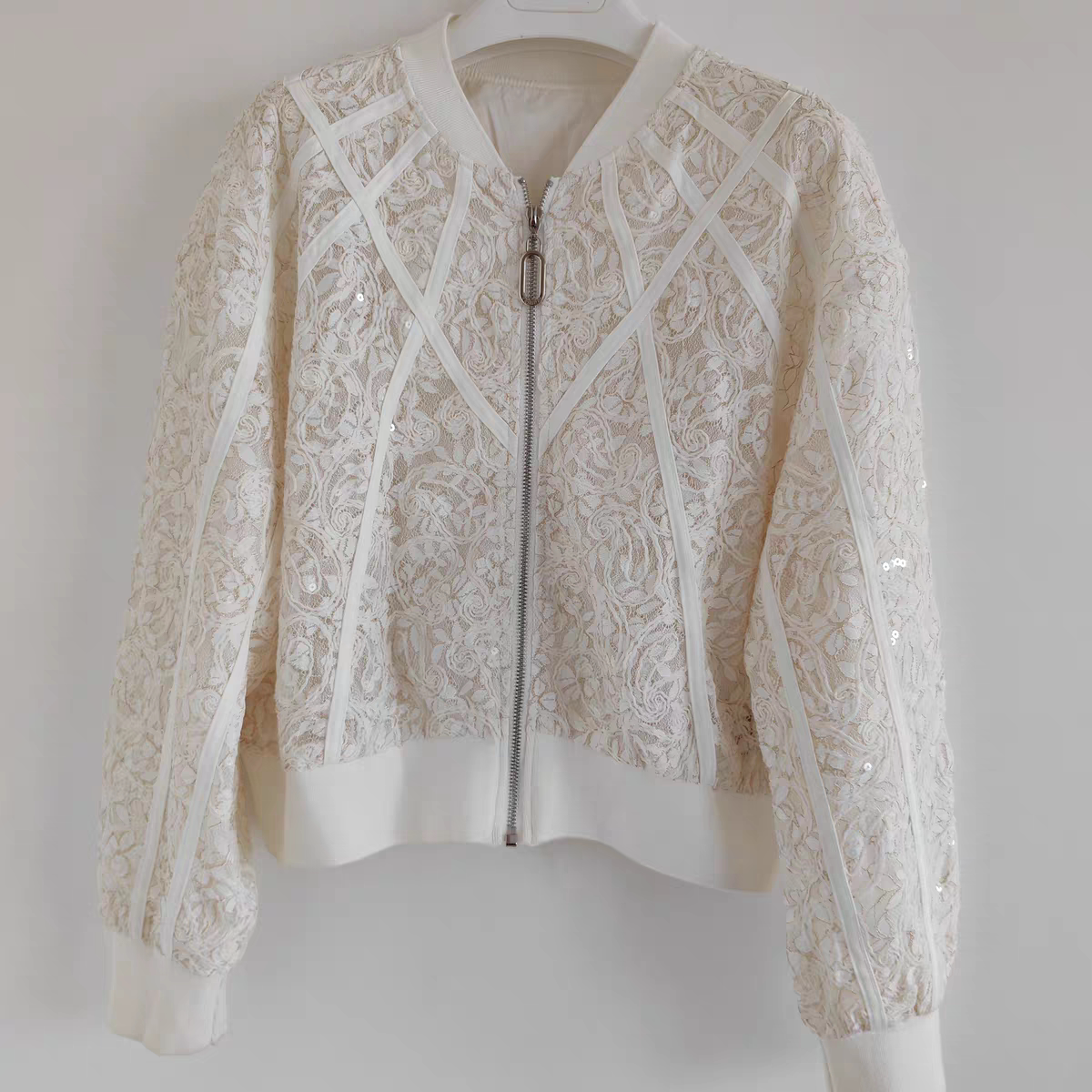 欧版蕾丝重工刺绣棒球服短外套女春秋新款洋气小个子夹克衫