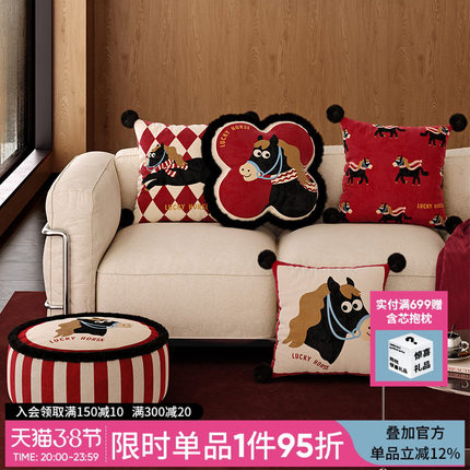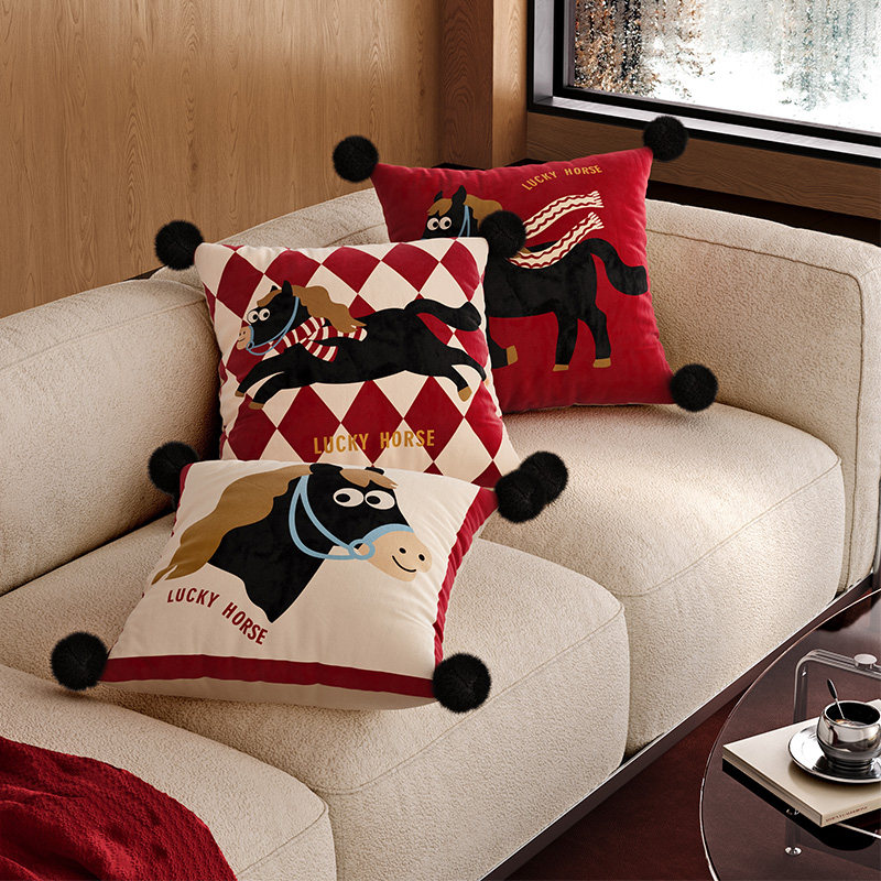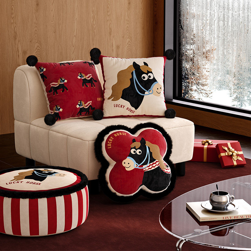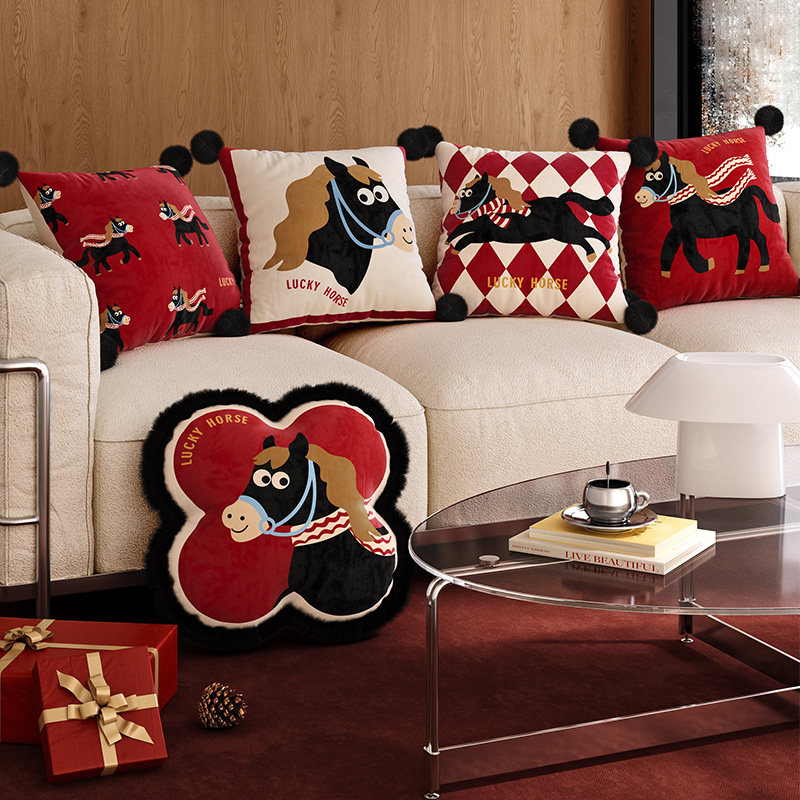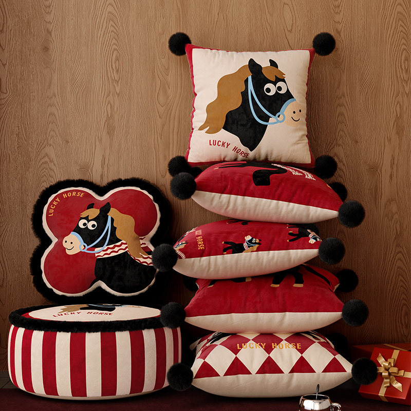 小马福吉红色马年沙发抱枕靠枕枕套轻奢高级2025新款卡通可爱枕头