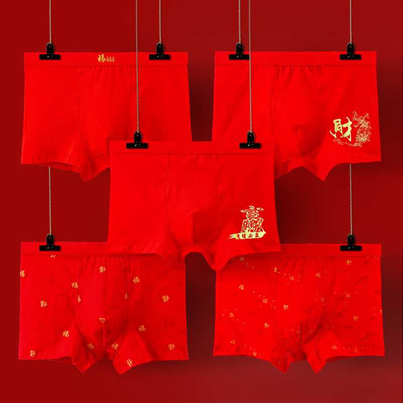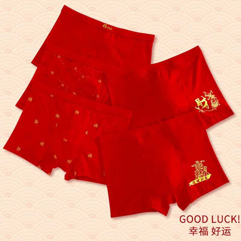 新款直销95%纯棉男士内裤本命年牛年大红色宽松肥佬四角裤结婚透