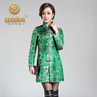 丝韵奕冉中老年冬季修身棉袄立体图案棉衣复古妈妈长款旗袍棉袄女