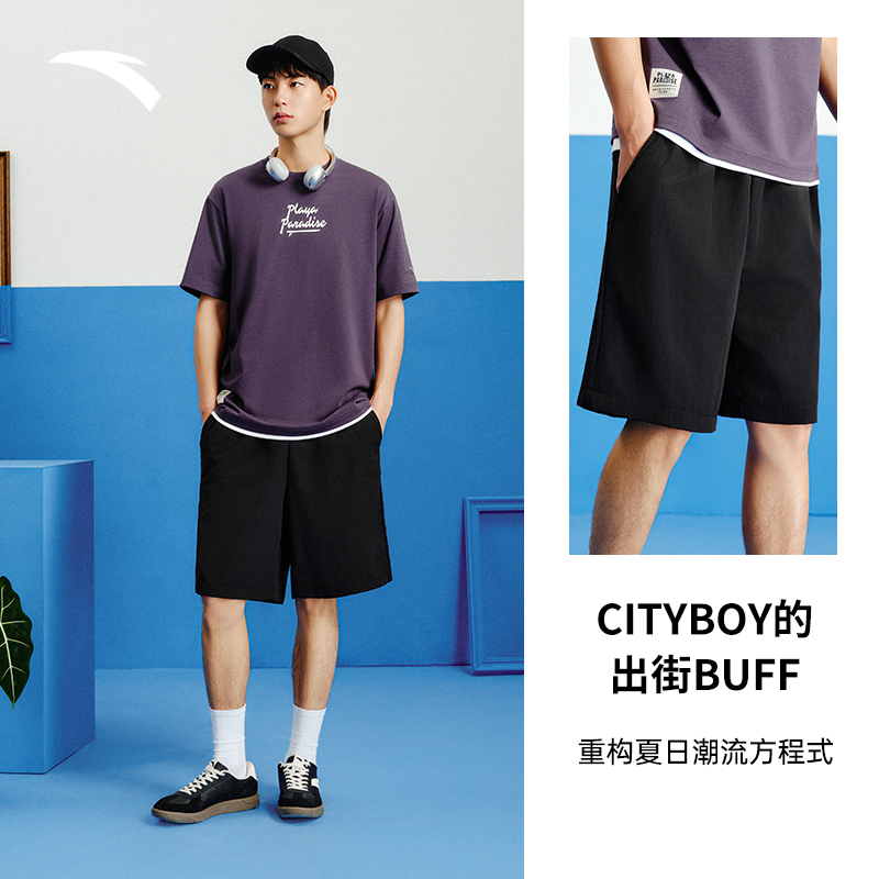 安踏冰丝速干休闲短裤男款夏季梭织速干休闲百搭宽松透气五分裤子