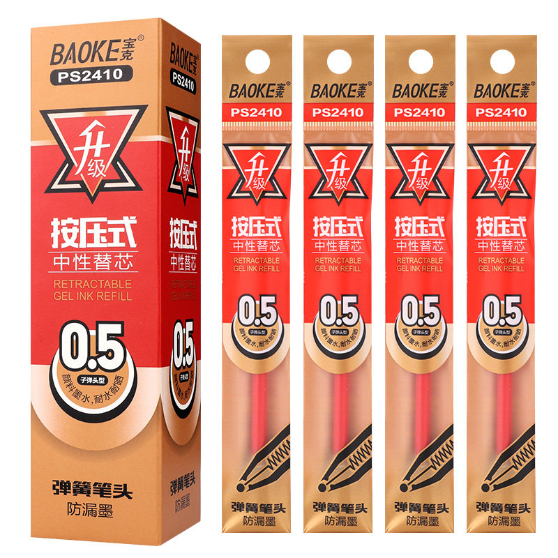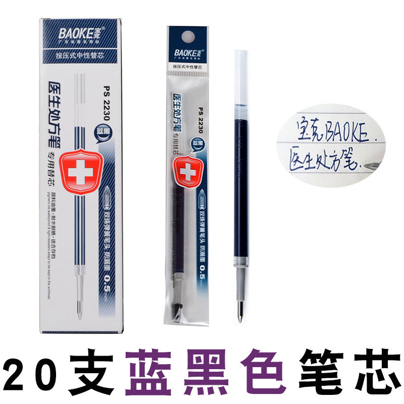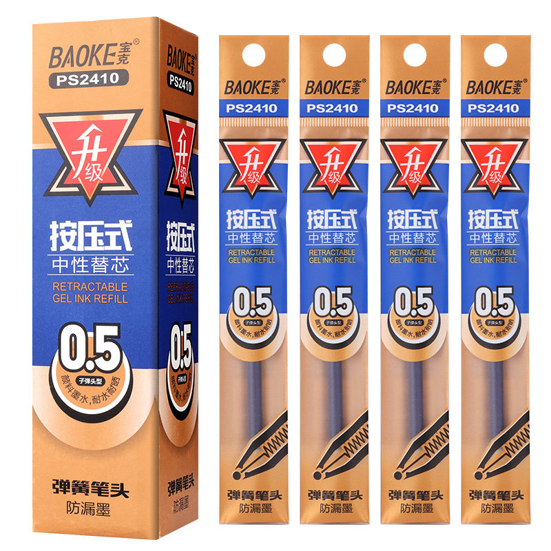宝克按动笔芯按压式中性0.5MM红墨蓝黑色水笔芯替芯子弹头替换学生弹簧商务办公芯处方2230兰2410医务护士用