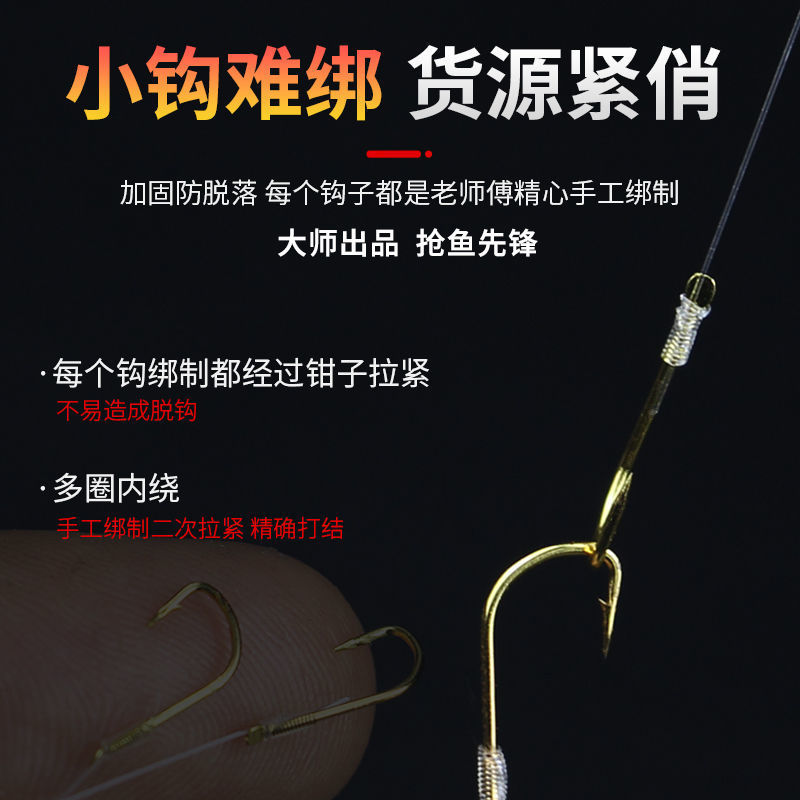 0.1#金袖台钓短子线双钩绑好防缠绕成品鱼钩有无刺溪流野钓鲫鱼钩