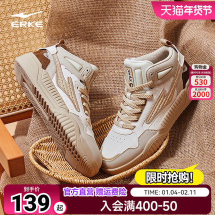 征服鸿星尔克男鞋高帮板鞋男2026春季新款厚底休闲男士运动鞋子