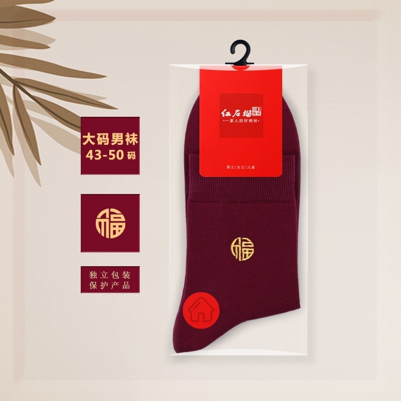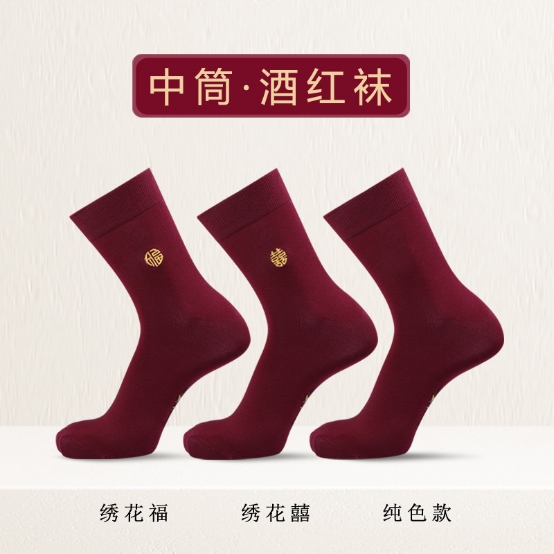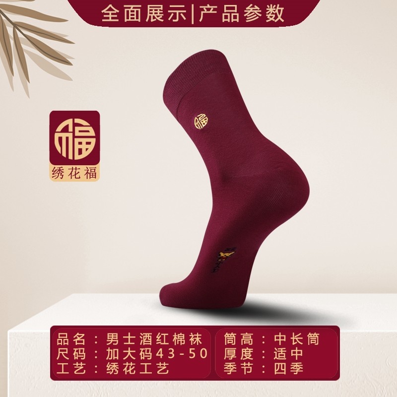 加大码酒红袜子男士本命年暗深红色棉袜马年结婚大号中筒纯棉男袜