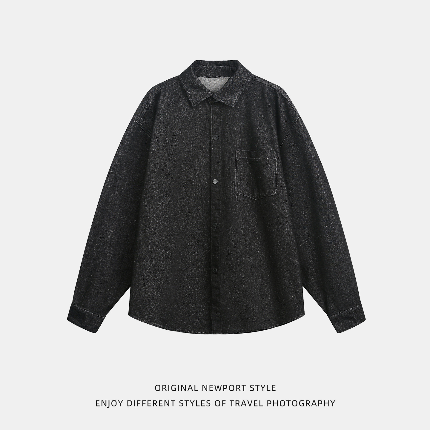 JY STYLE 复古原牛长袖衬衫男新款日系宽松潮牌休闲水洗牛仔衬衣