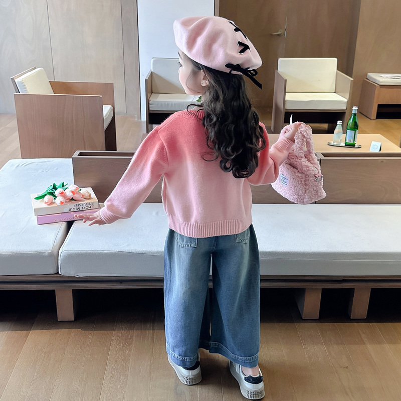 女童套装春秋2025新款儿童秋季洋派宝宝时髦毛衣秋装阔腿裤两件套