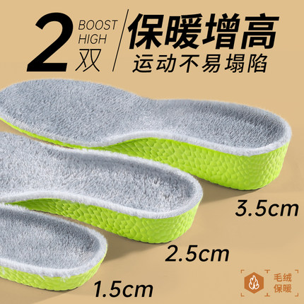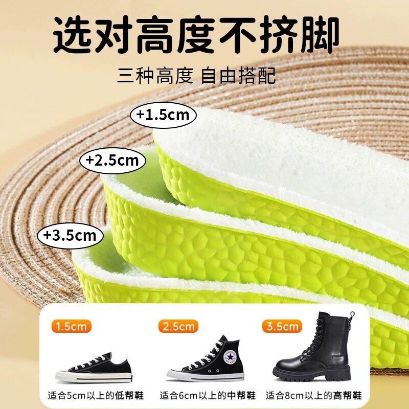 邦尼保暖增高鞋垫马丁靴女冬季加绒毛绒软内增高隐形减震防臭男款