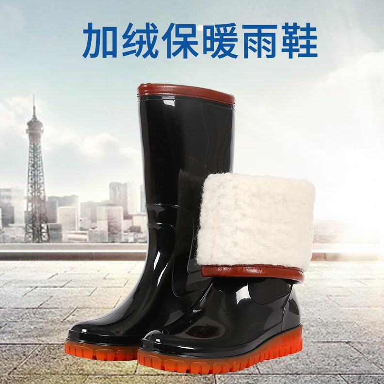 雨鞋雨靴女高筒加厚保暖一体加绒牛筋棉水鞋防滑防水胶鞋冬季时尚