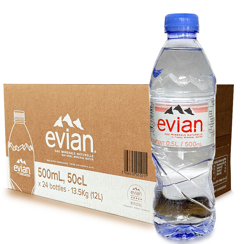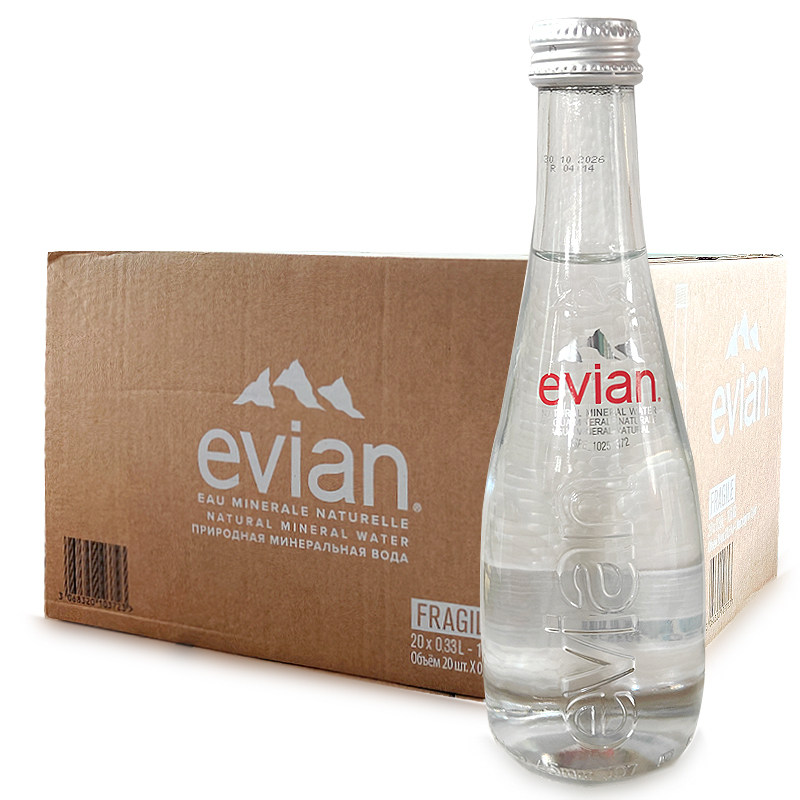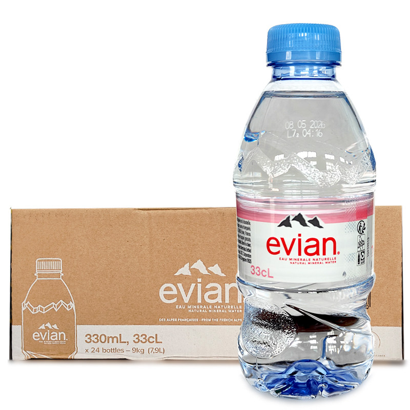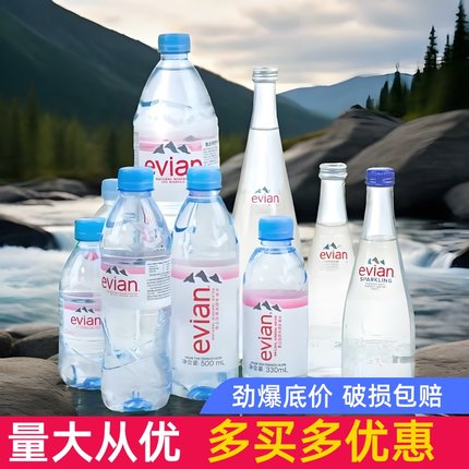 Evian依云矿泉水玻璃瓶高端天然弱碱性饮用水750/500/330ml/1.5L