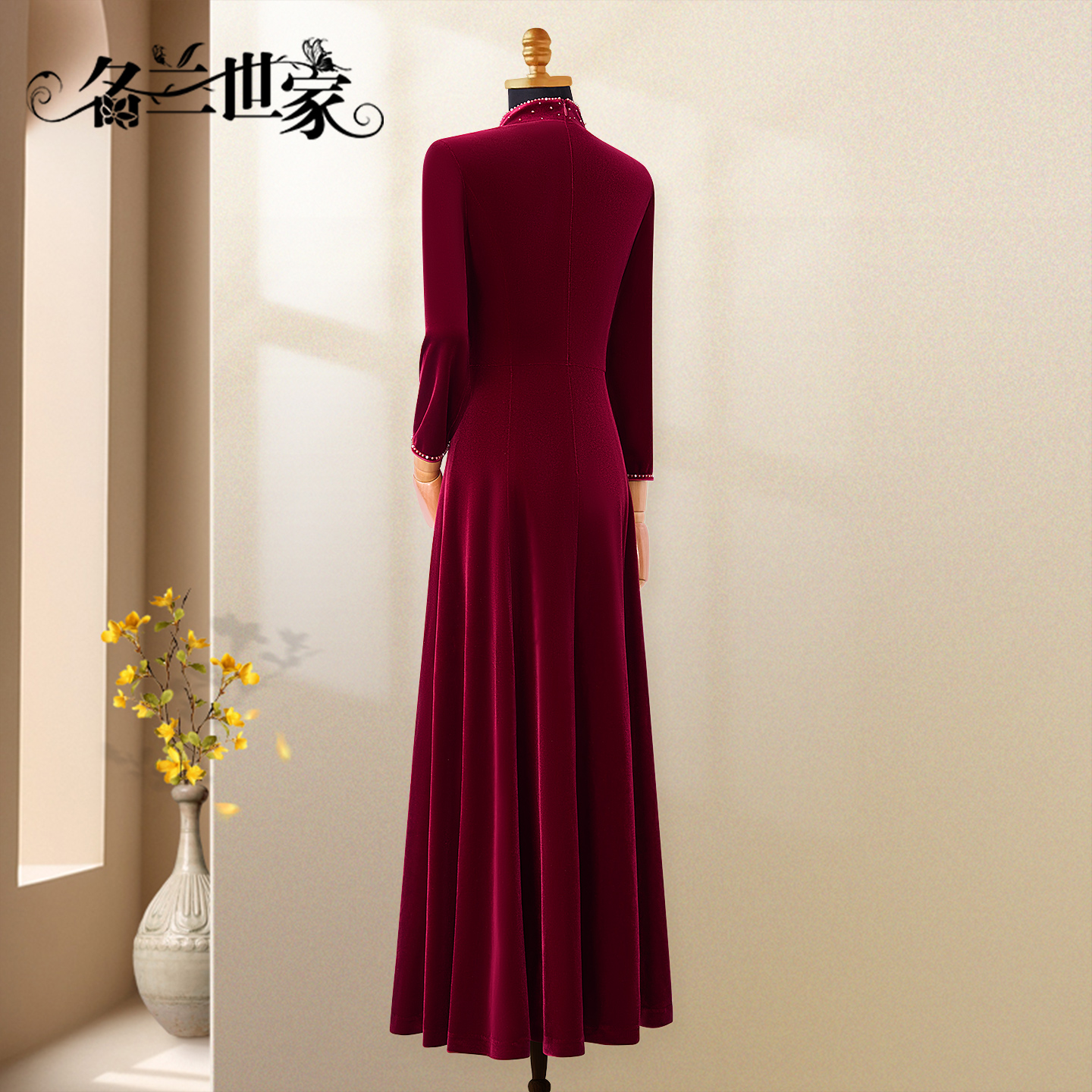 名兰世家喜婆婆婚宴礼服宴会喜妈妈装气质丝绒大摆裙新中式连衣裙
