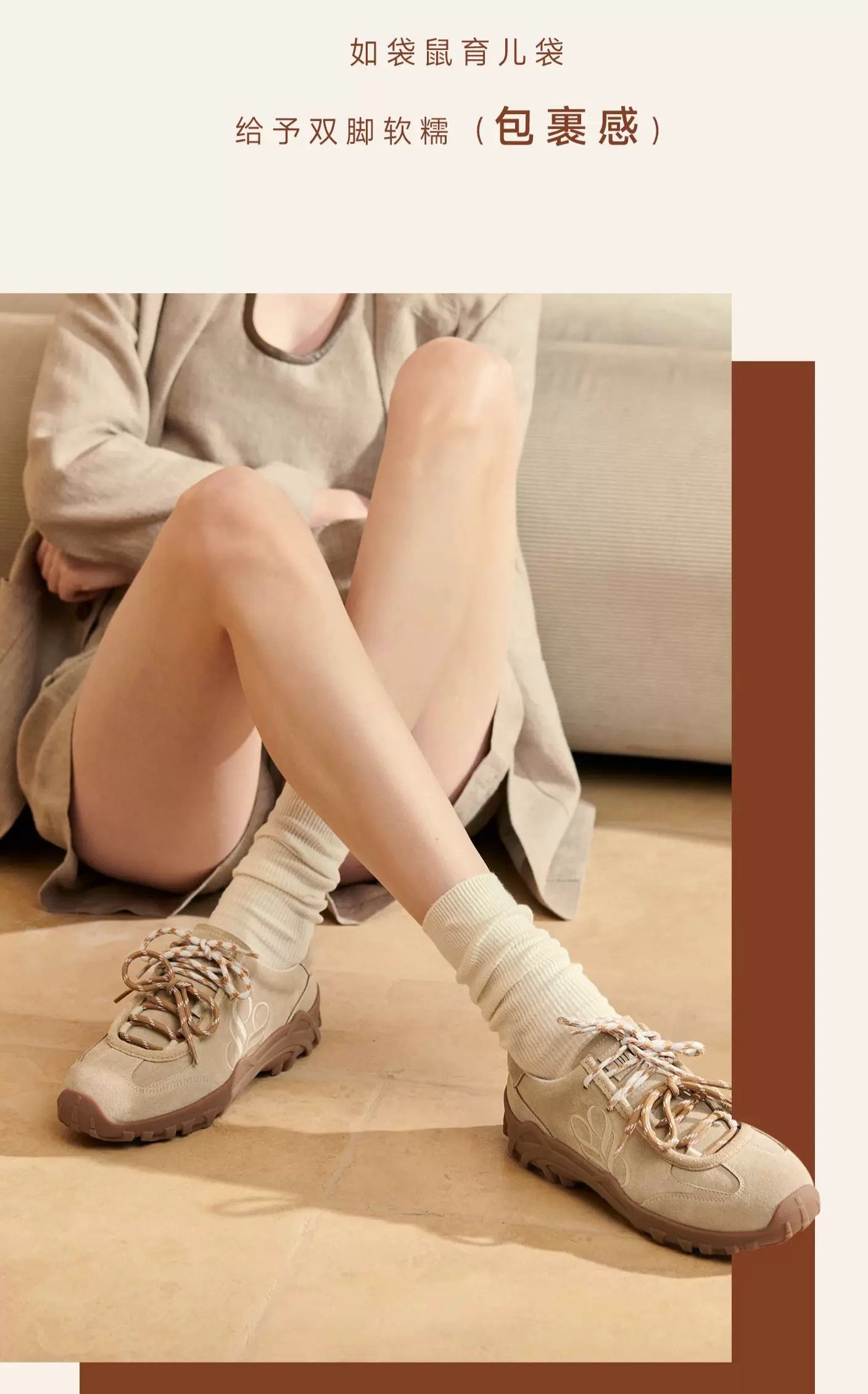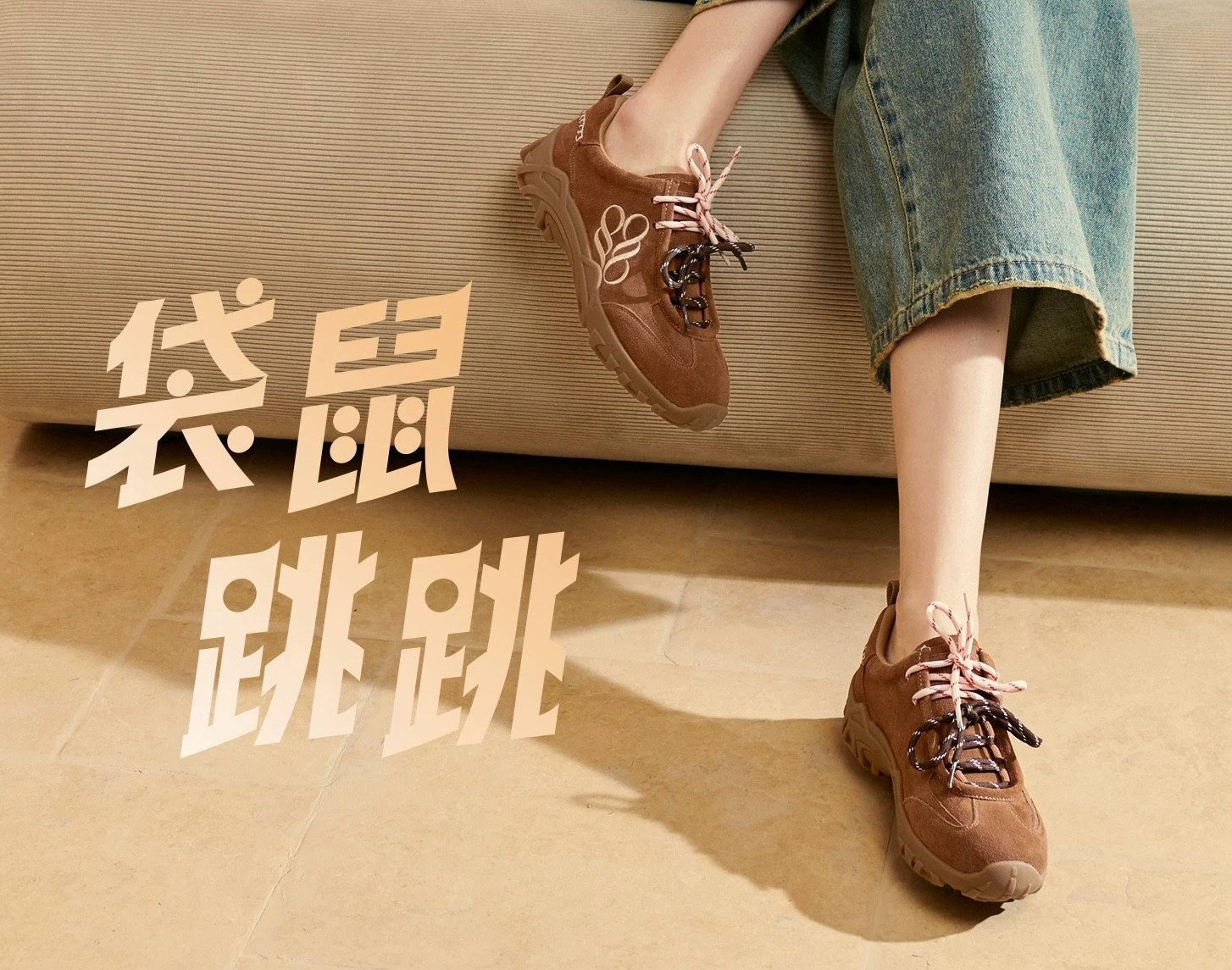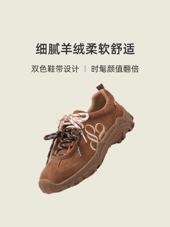 商场同款袋鼠跳跳2025秋新款时尚双鞋带厚底休闲鞋运动袋鼠鞋女鞋