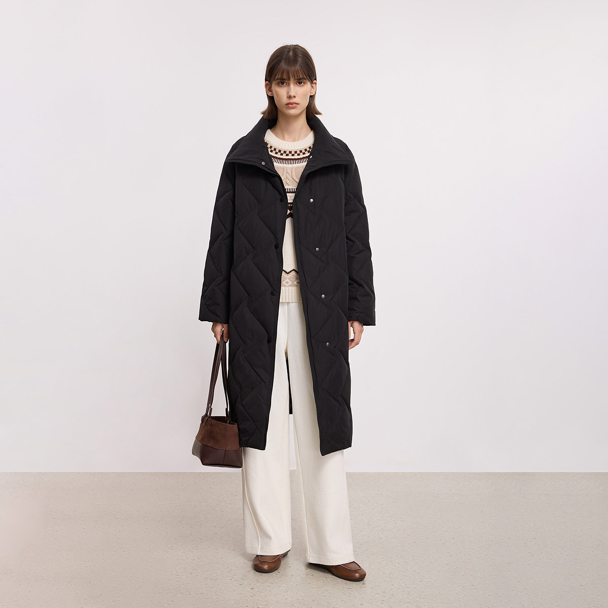 LILY通勤立领百搭收腰翻领羽绒服