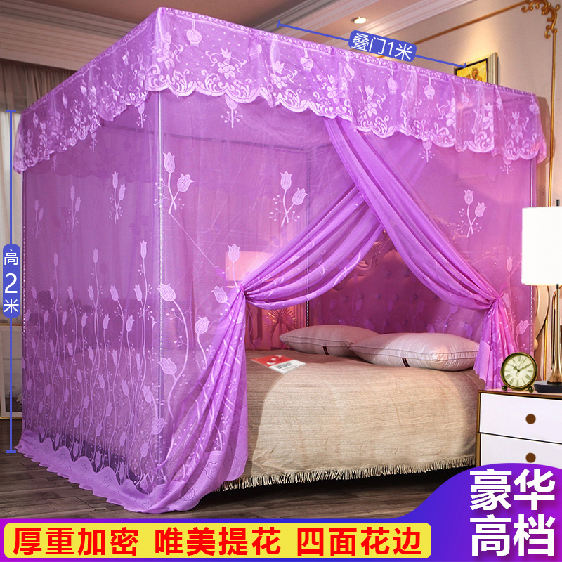 蚊帐落地家用宫廷蚊帐1.8m床1.5米2单开门带支架老式双人纹账加密