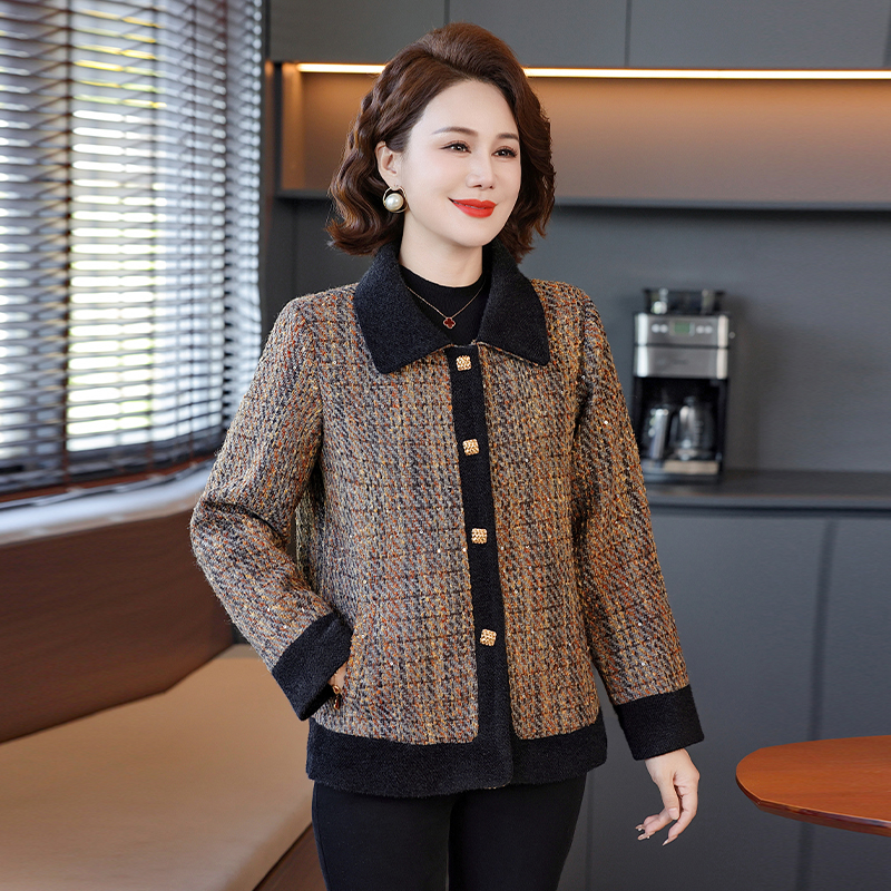 中年妈妈秋季外套洋气减龄2025新款中老年女装春秋小香风呢子上衣
