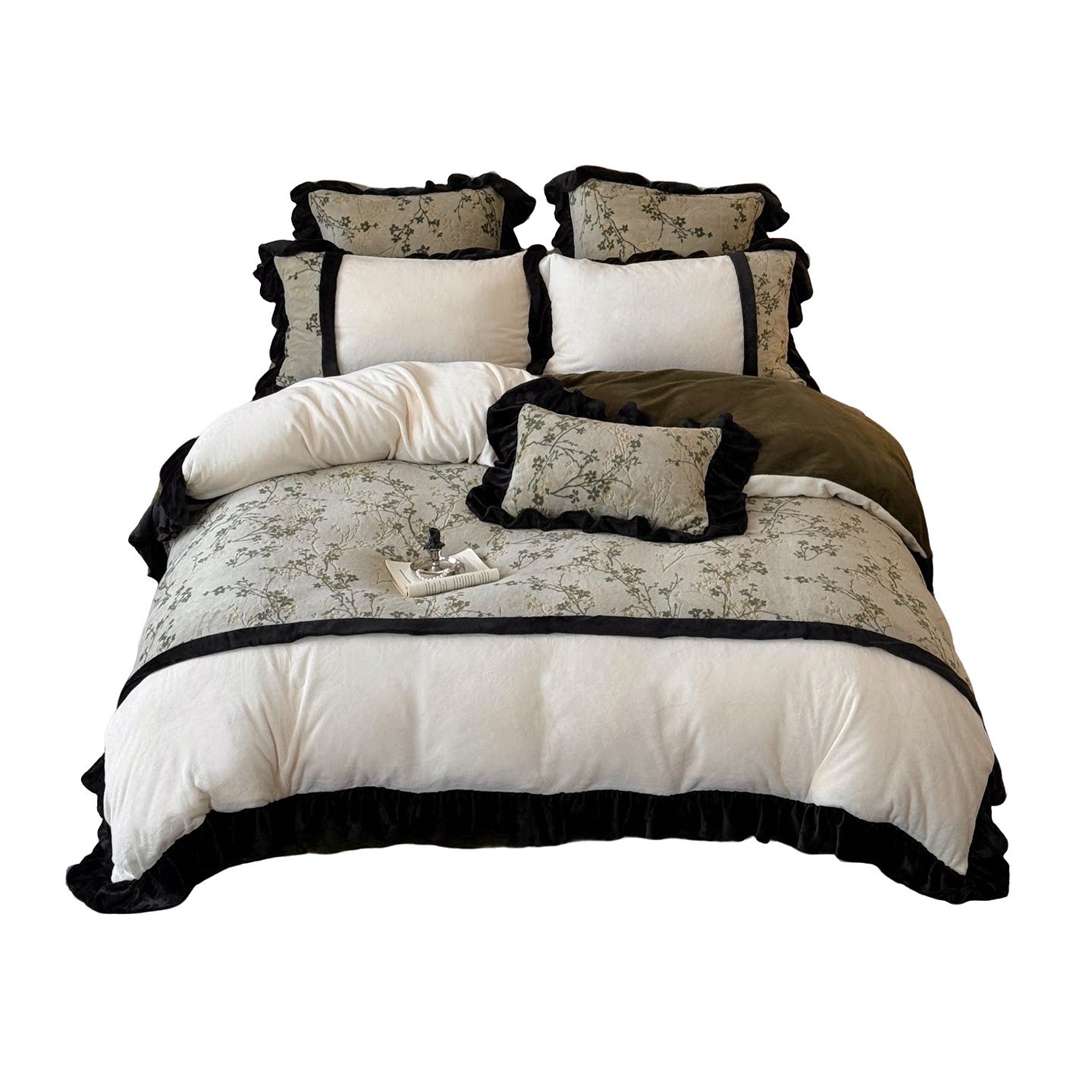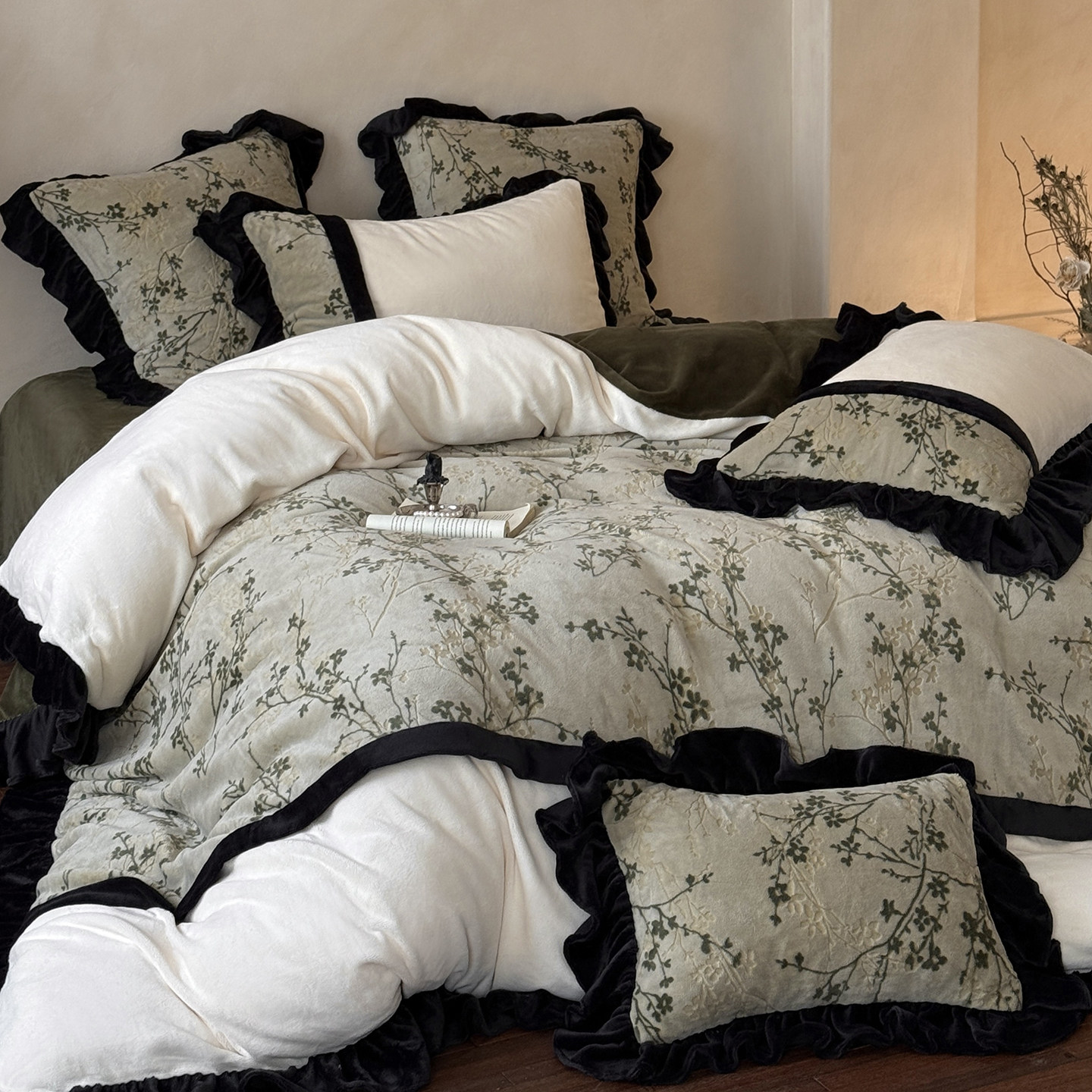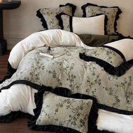 法式复古花卉牛奶绒四件套公主风珊瑚绒双面绒高级感冬季床单床品