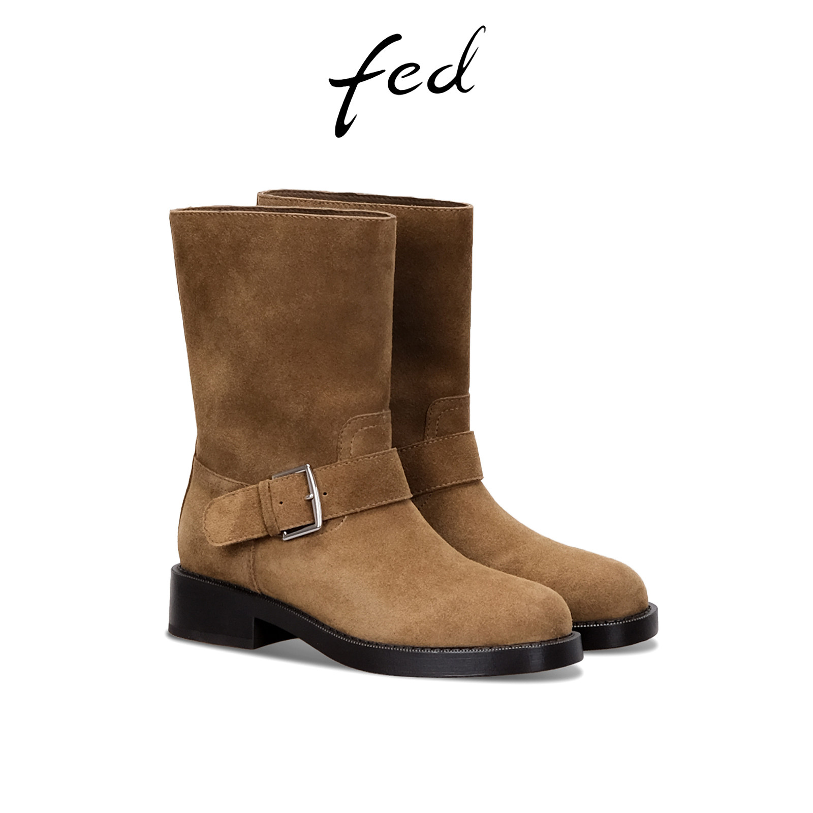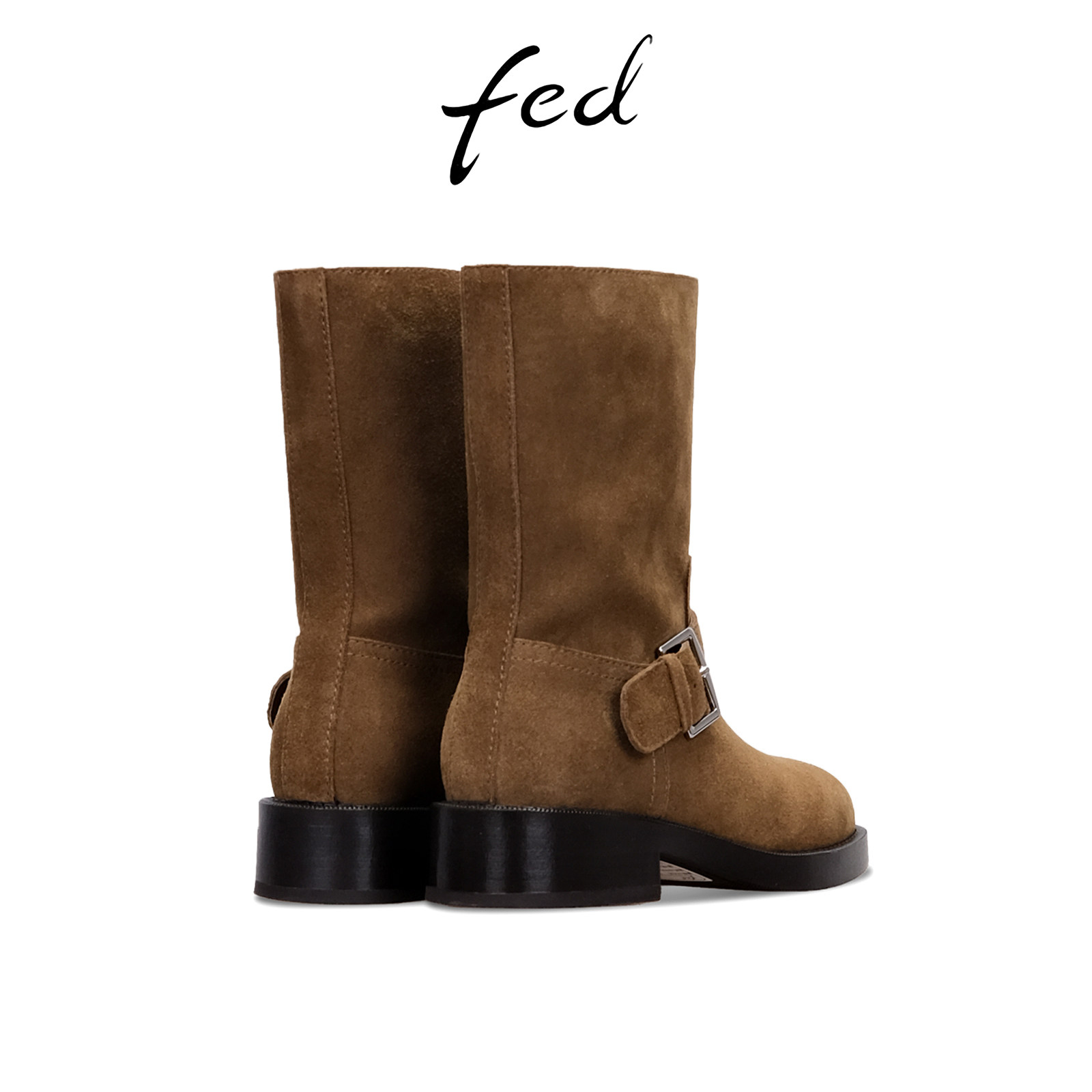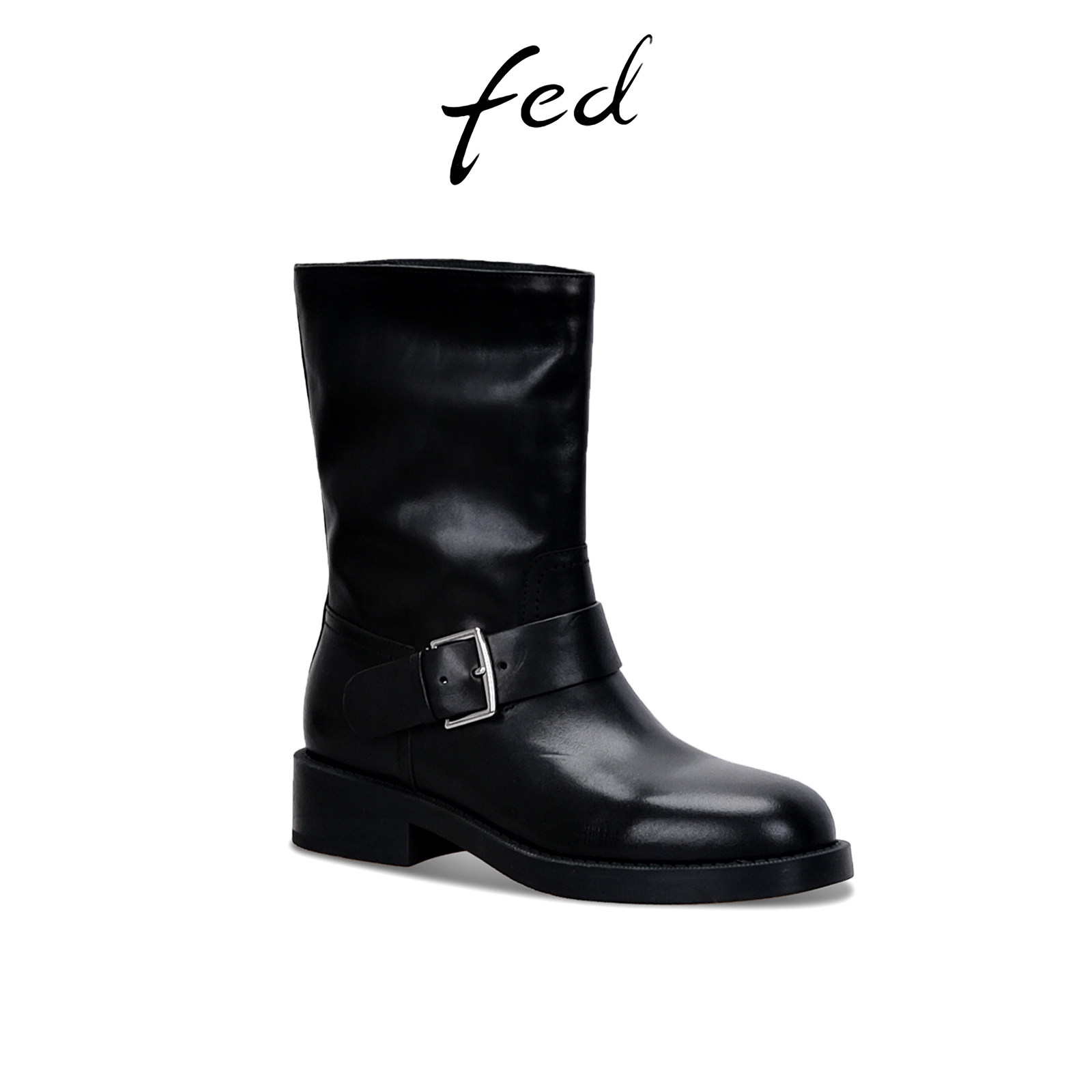 fed真皮短靴冬季新款女靴皮带扣时装靴粗跟骑士靴女S1209-DD0263
