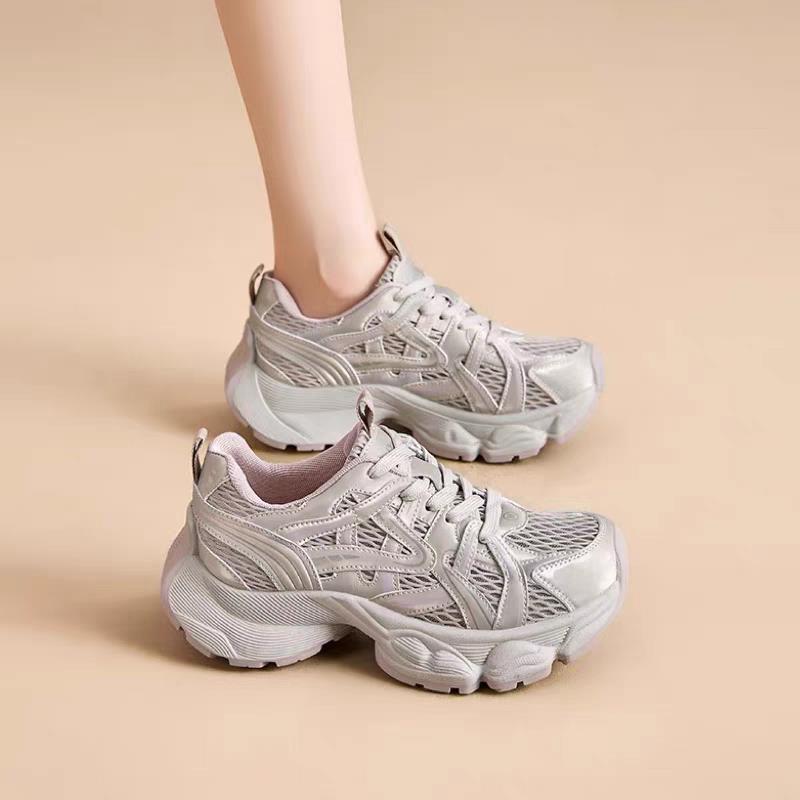 品牌特价网面老爹鞋女2025夏季新款厚底时尚休闲鞋灰色跑步运动鞋