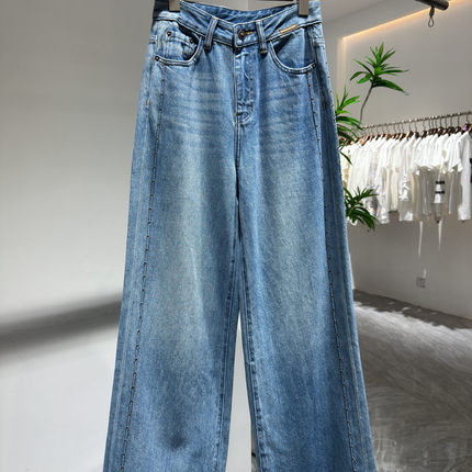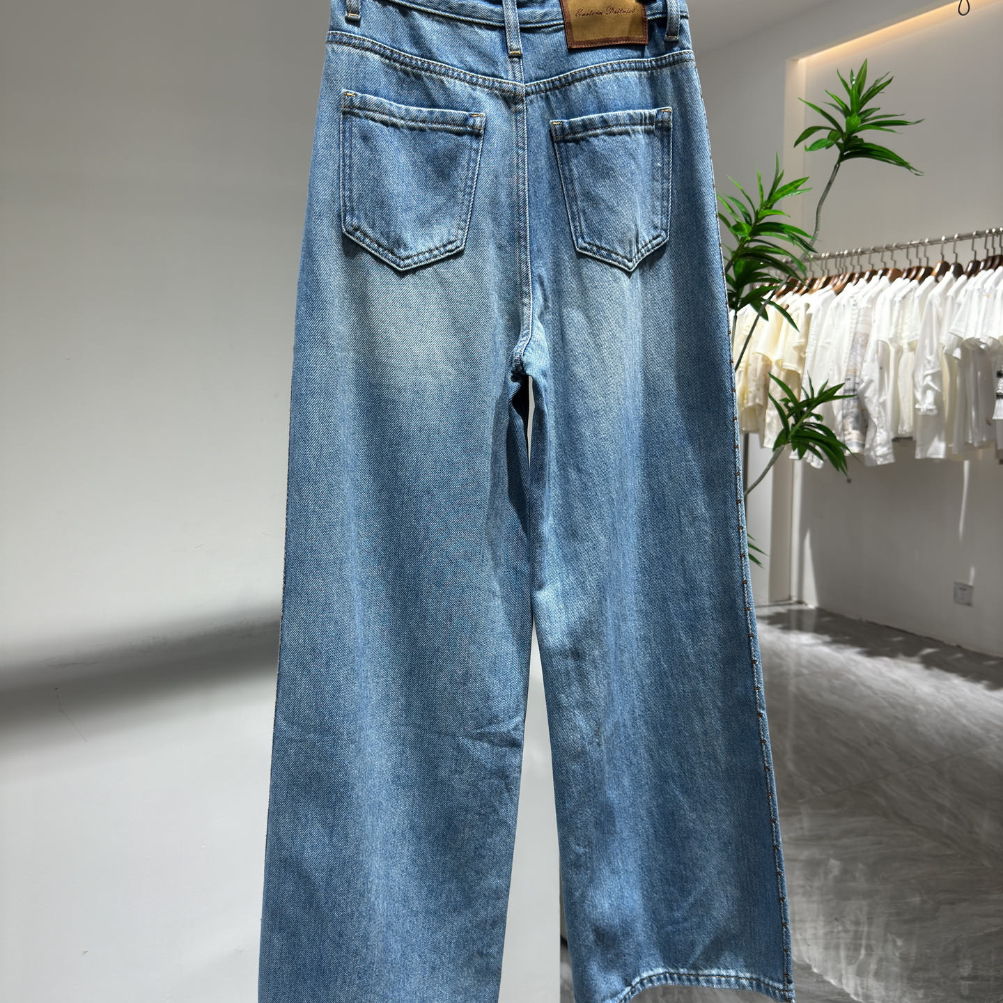 欧洲站2025秋季新款女裤时尚百搭高腰显瘦直筒牛仔裤女长裤