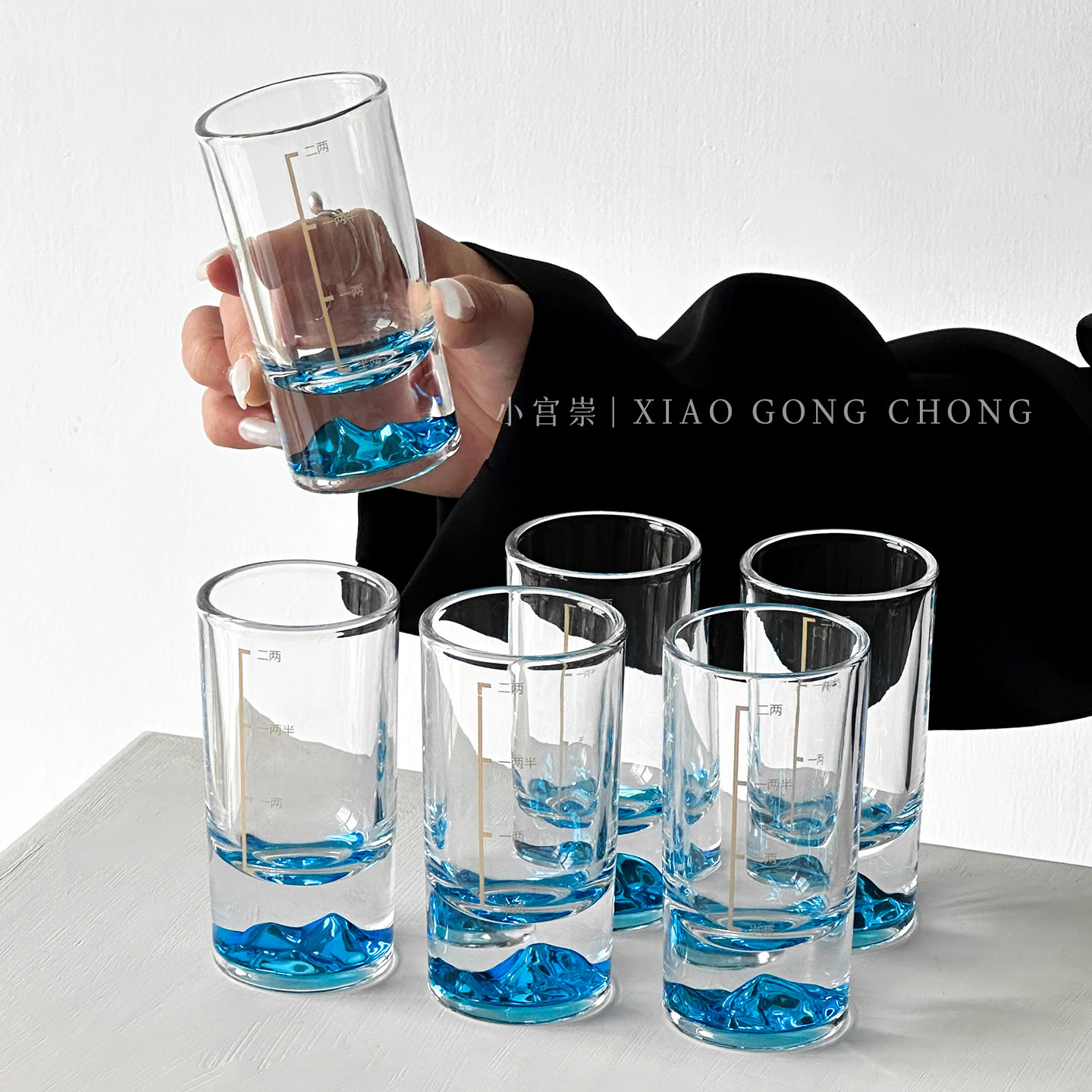 创意蓝山白酒杯套装家用轻奢高档带刻度二两酒具高级感玻璃一口杯