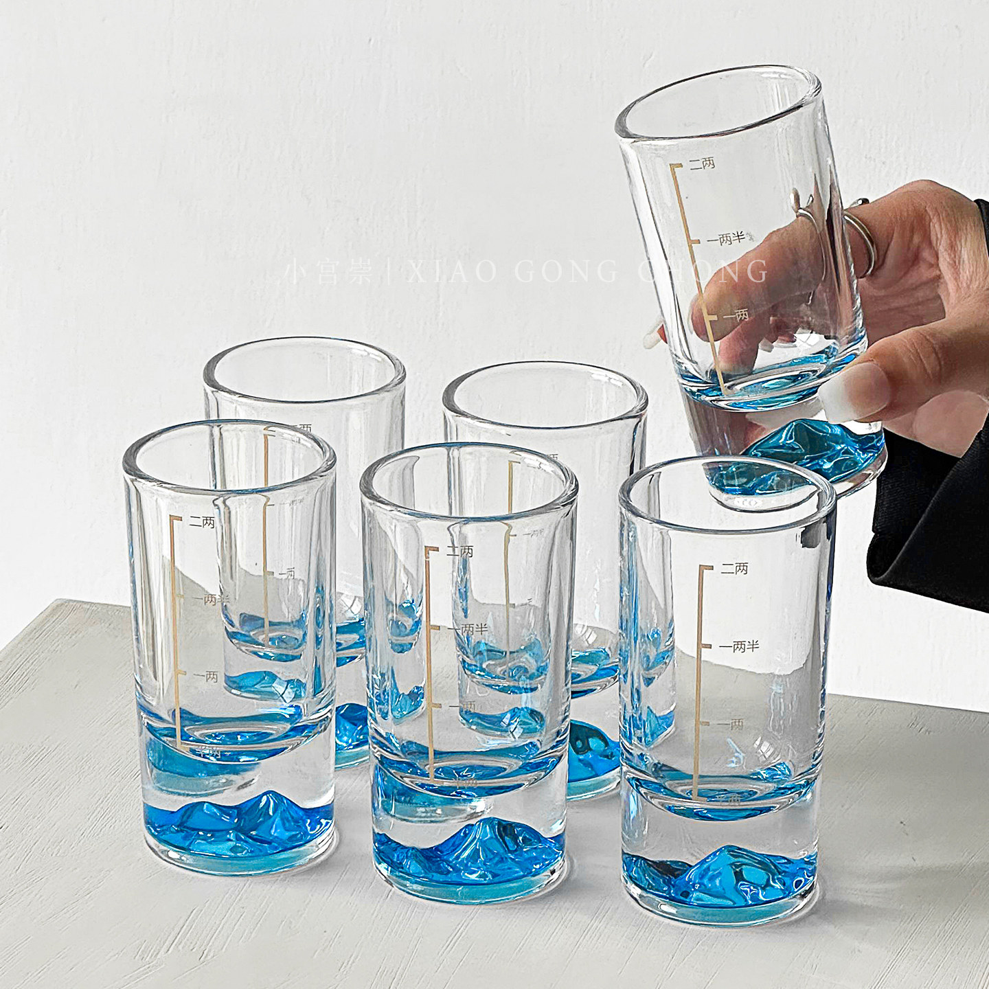 轻奢家用带刻度蓝山白酒杯套装