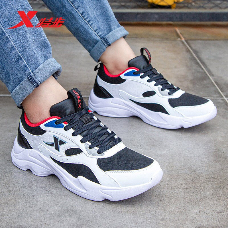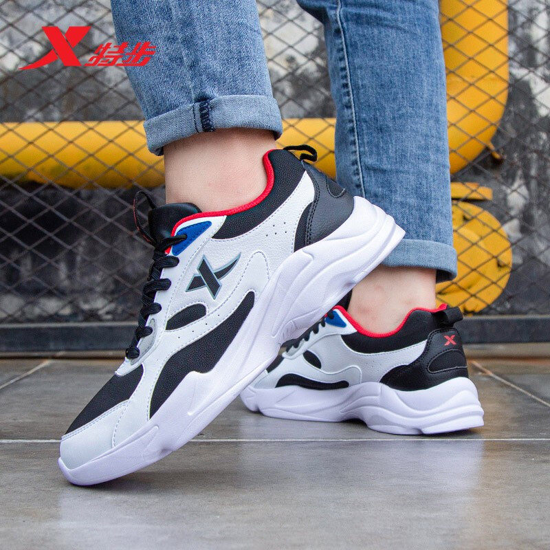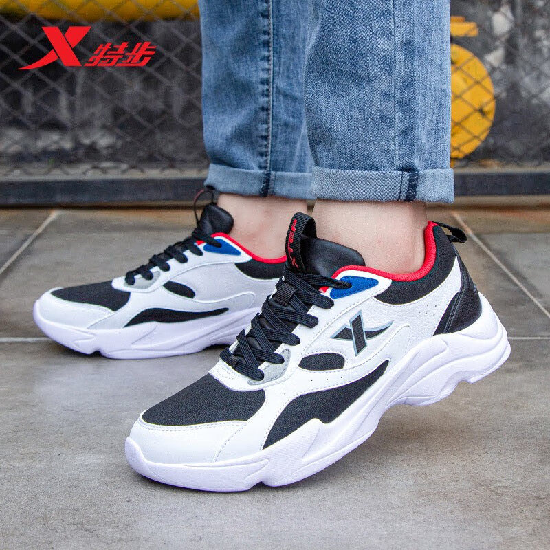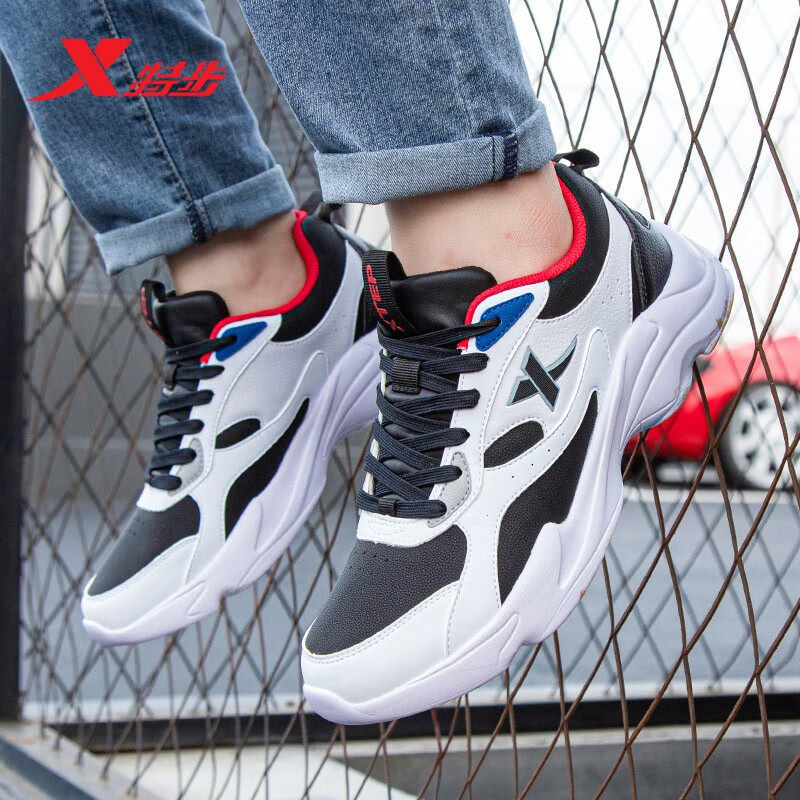 特步男鞋皮面老爹鞋跑步鞋运动鞋