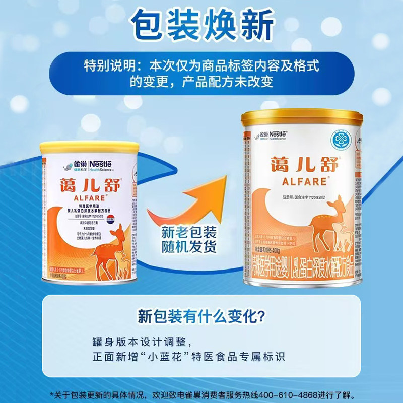雀巢蔼儿舒婴儿配方粉400g*2罐牛奶蛋白过敏缓解腹泻乳糖不耐受