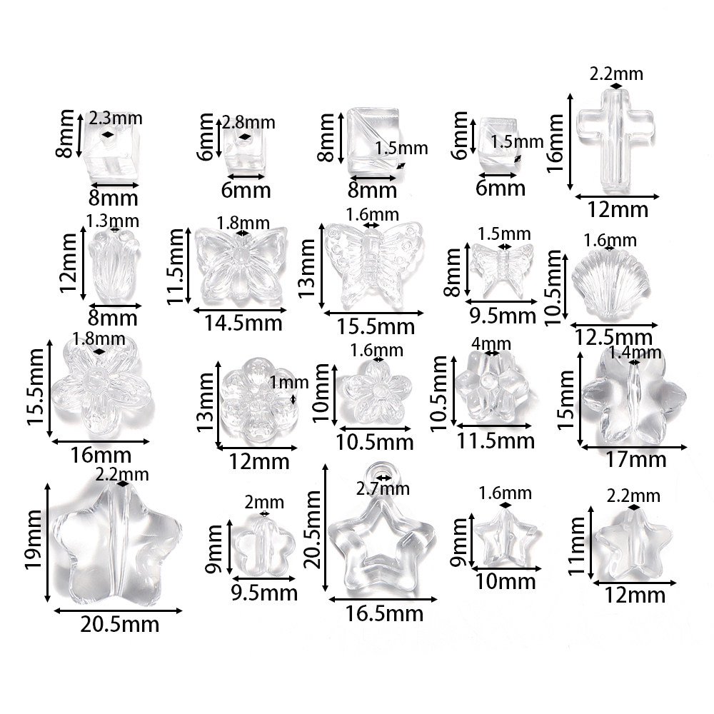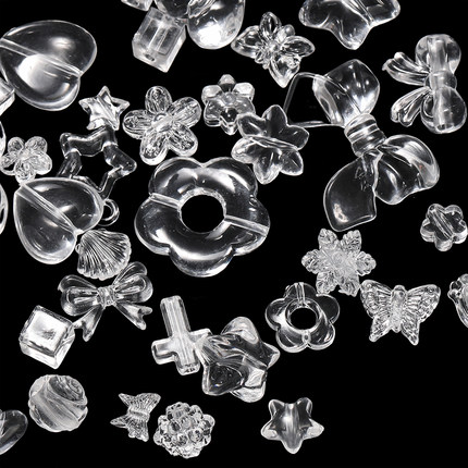 亚克力透明五角星花朵蝴蝶穿孔珠散珠diy手链项链手机链串珠材料
