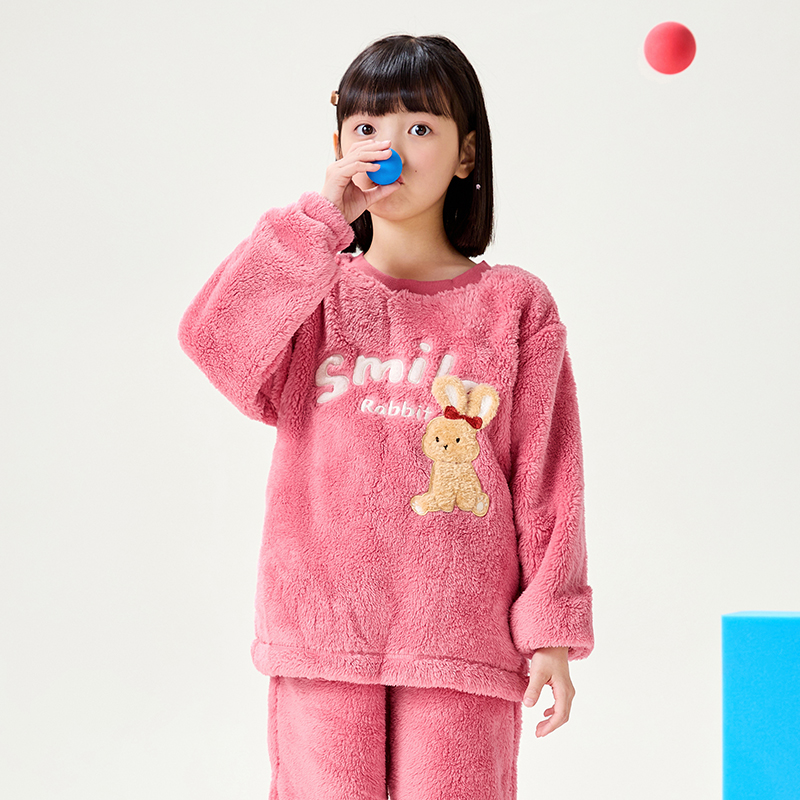 女童睡衣珊瑚绒加厚套装冬可外穿
