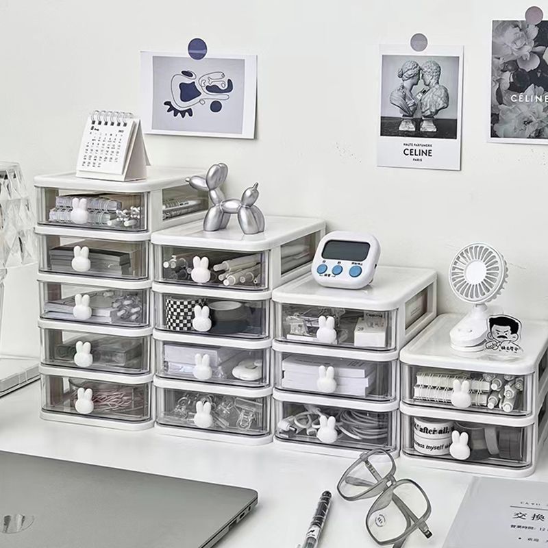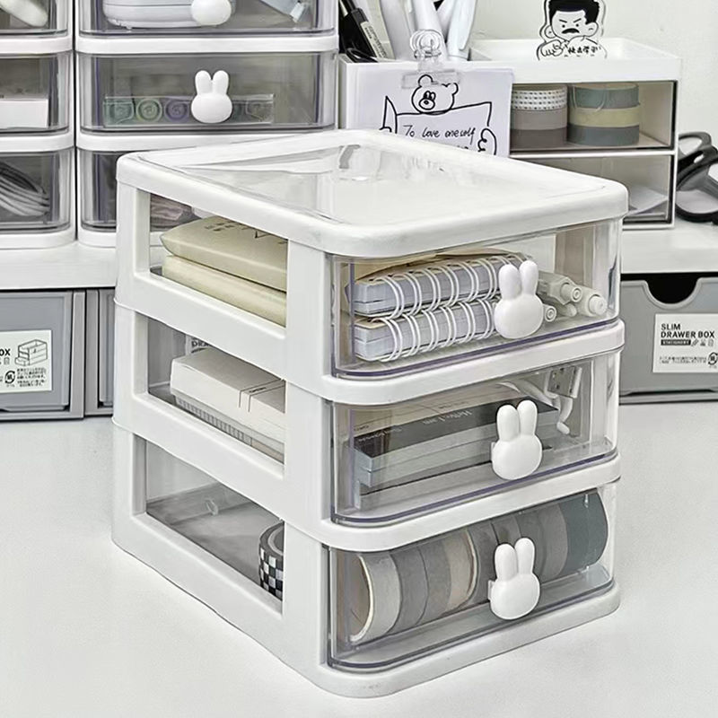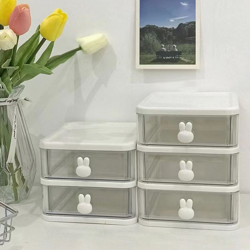 收纳盒抽屉式学生宿舍桌面透明化妆品文具杂物发饰卧室兔子收纳盒
