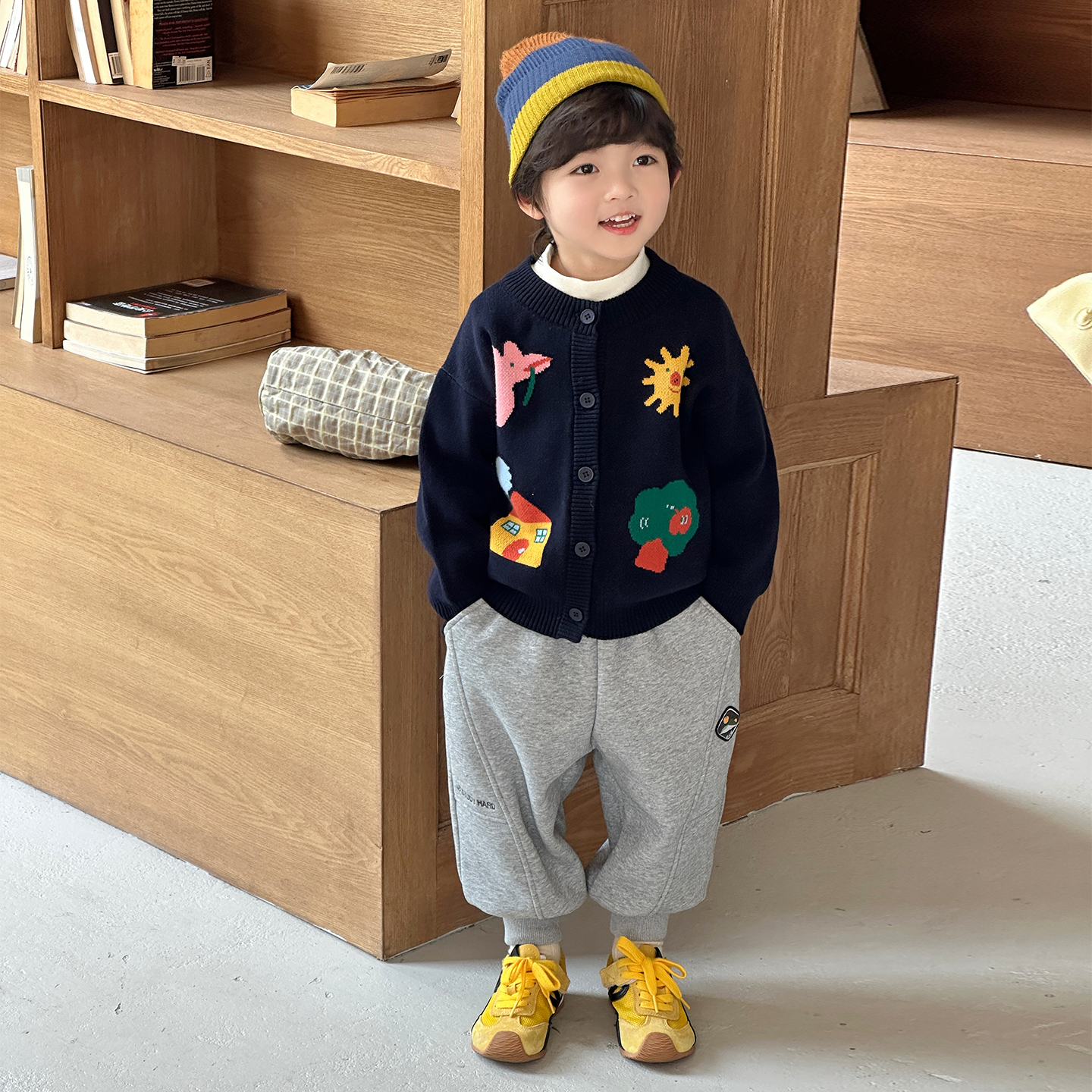 男童毛衣外套2025秋冬季新款宝宝纯棉针织开衫儿童卡通棉线衣8170