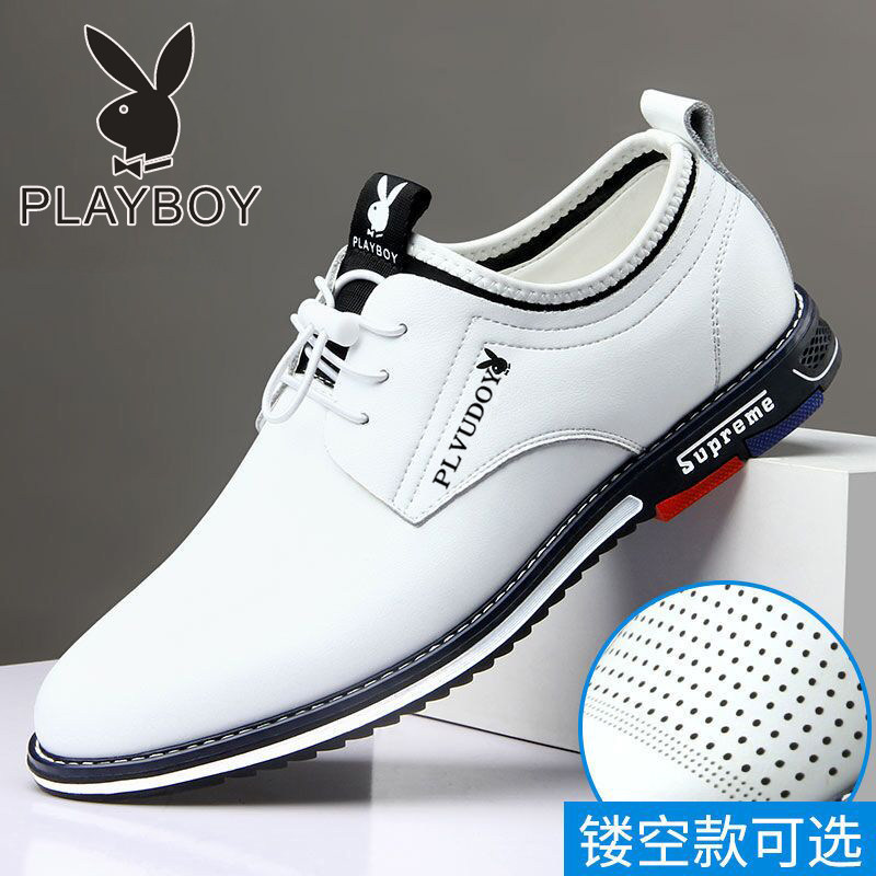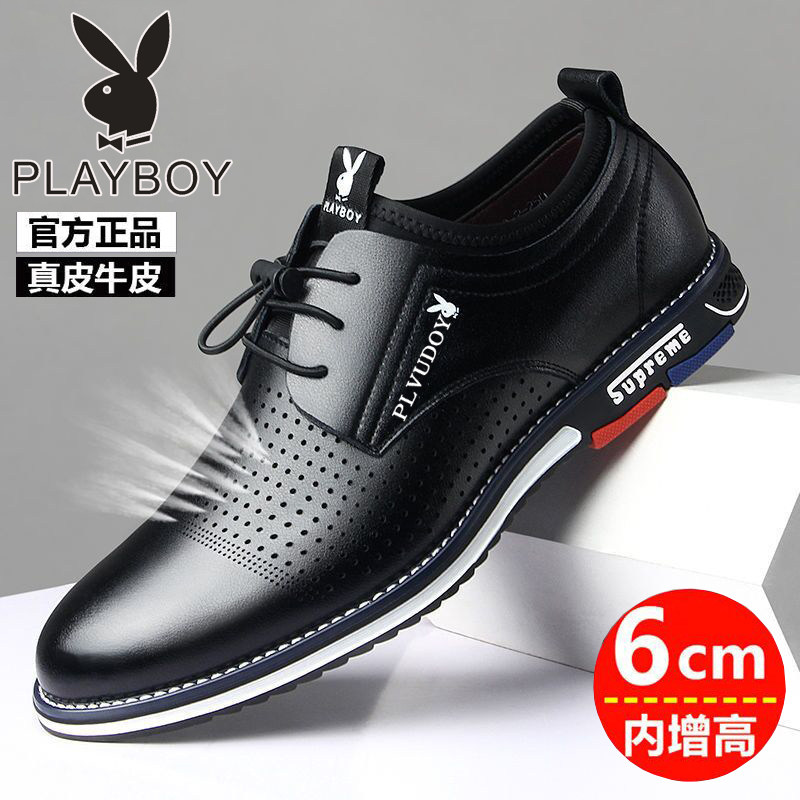 花花公子皮鞋男士真皮商务休闲鞋透气镂空洞洞打孔凉鞋内增高男鞋