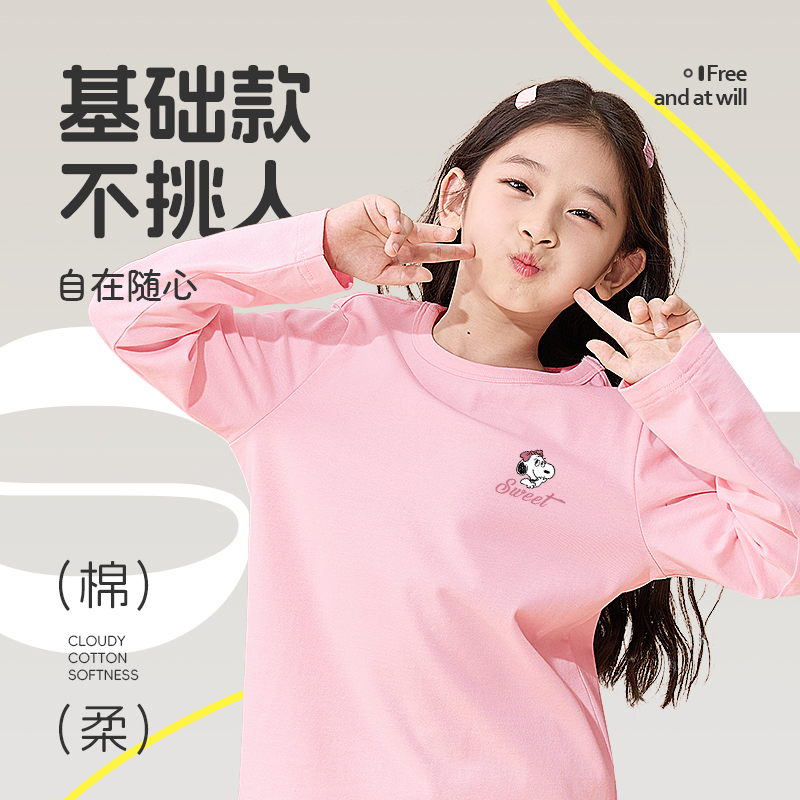 史努比女童长袖t恤春秋款女大童宽松上衣女孩春季衣服儿童打底衫