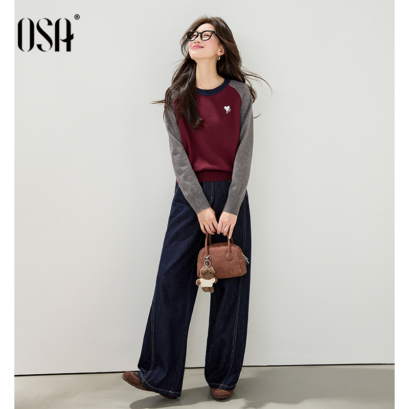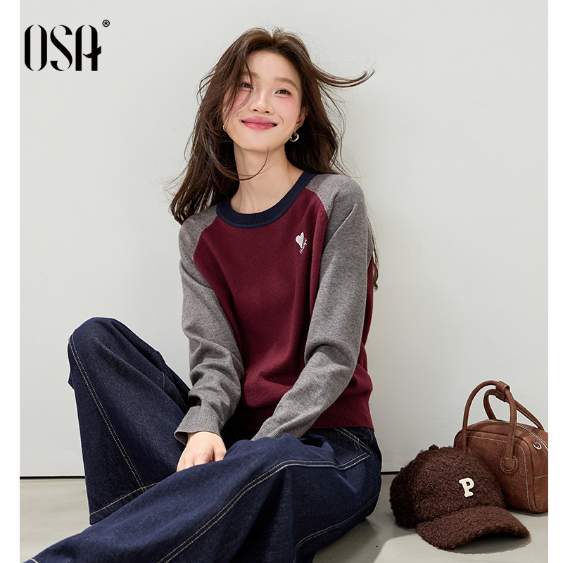 OSA欧莎复古安可拉红毛针织衫女25秋季新款百搭插肩袖打底衫上衣