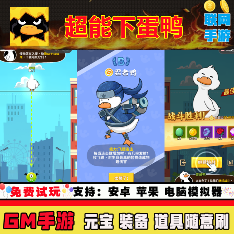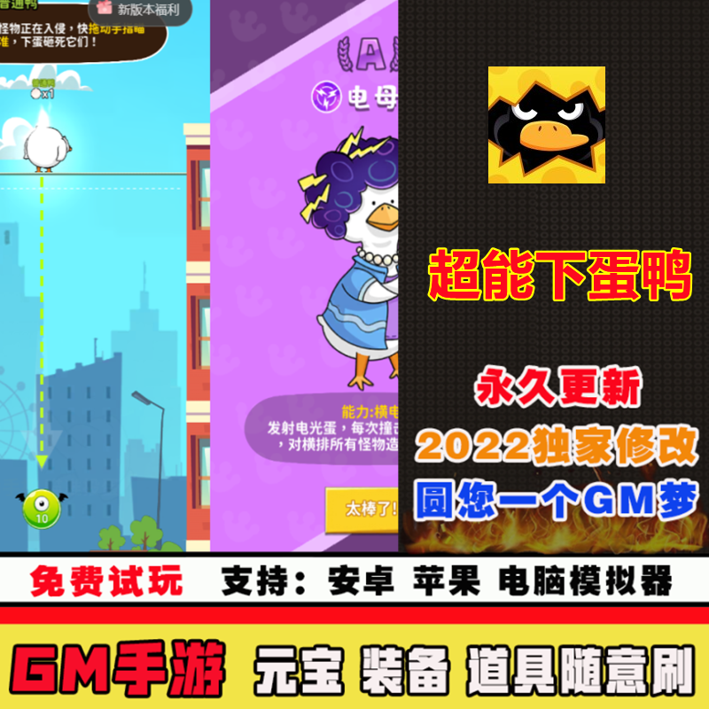超能下蛋鸭手游无限GM后台道具元宝钻石内部号辅助折扣礼包兑换码破译免费版游戏安卓i os鸿蒙联网
