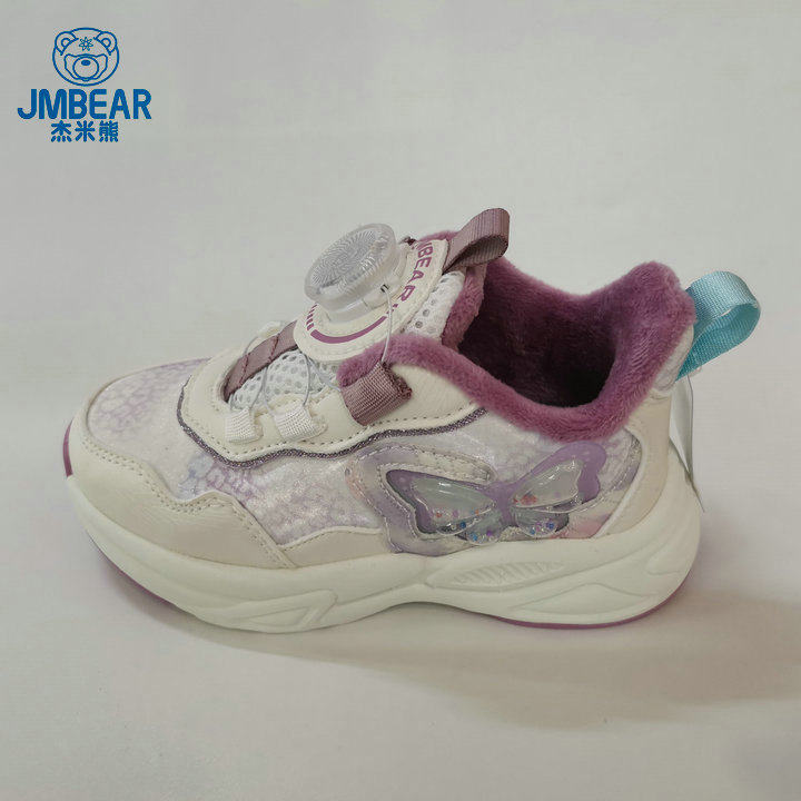 杰米熊冬季加绒女童旋纽扣运动鞋