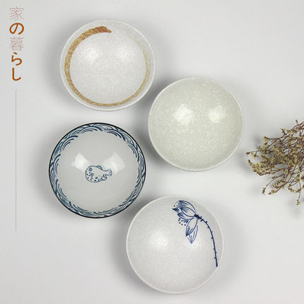 日式陶瓷米饭碗釉下彩5寸小汤碗泡菜碟酱料碟斗笠碗创意家用餐具