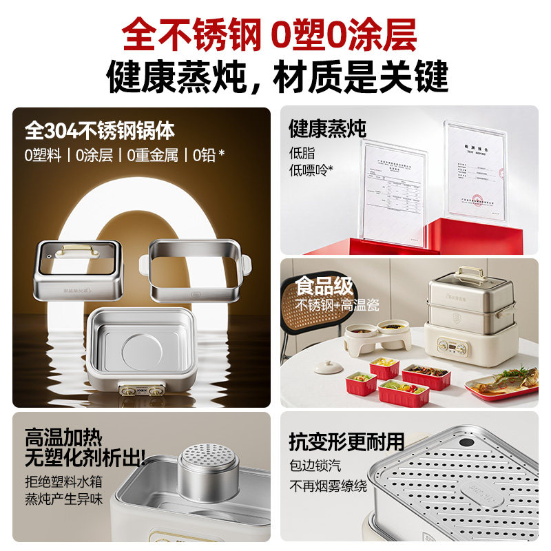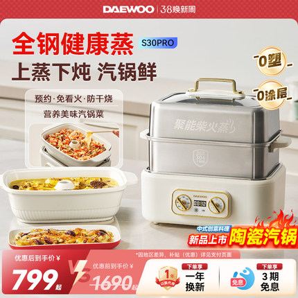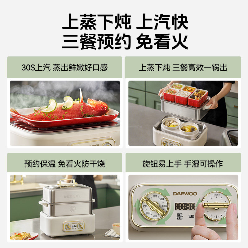 大宇全不锈钢电蒸锅多功能家用三层全自动蒸汽锅一体锅大容量蒸笼