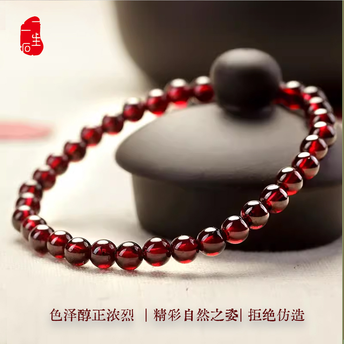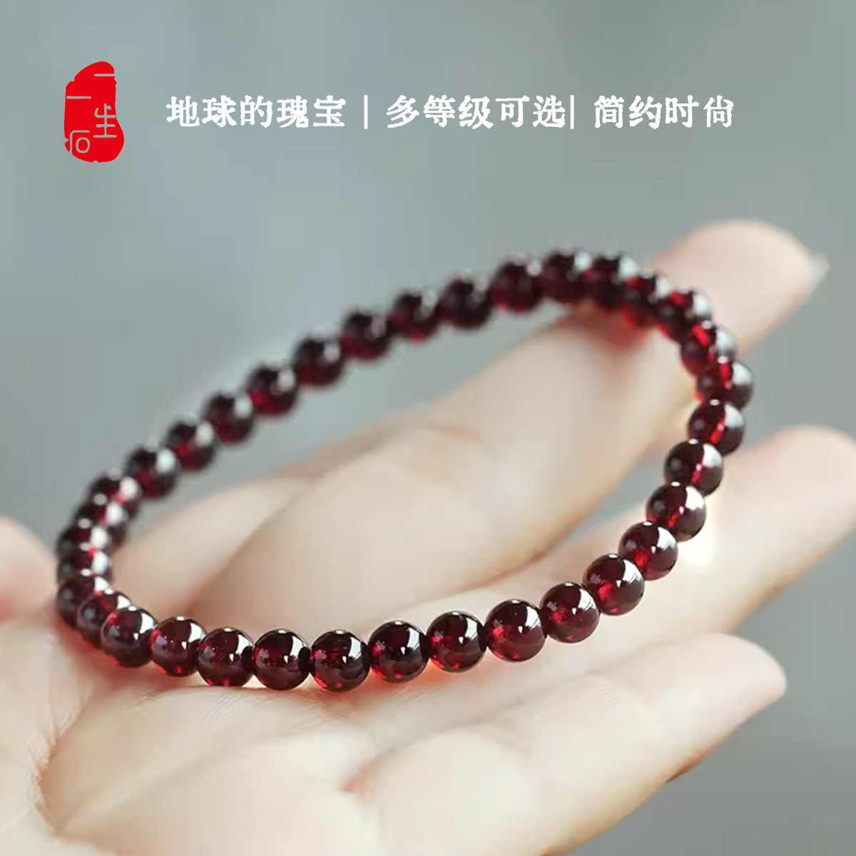 一生一石天然正品石榴石收藏级手链女单圈水晶手串 多尺寸可选