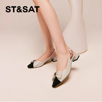 St&Sat/星期六春夏羊皮拼接蝴蝶结单鞋粗跟包头凉鞋女SS31114294