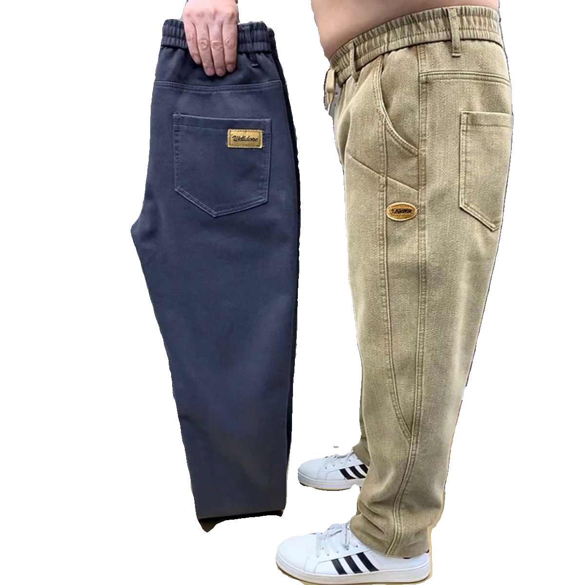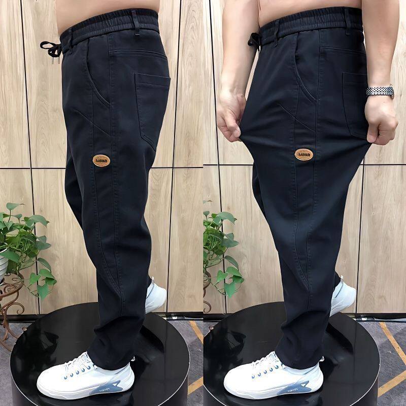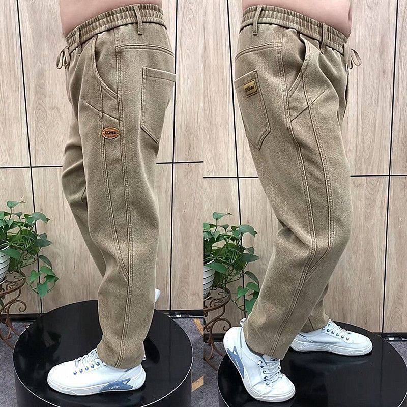 秋冬男士牛仔老爹裤弹力百搭加绒高腰直筒长裤中年宽松休闲哈伦裤