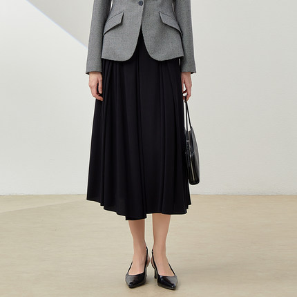 WBQ06058 茉莉雅集 赫本风不规则收褶飘逸装腰大摆伞裙半裙女