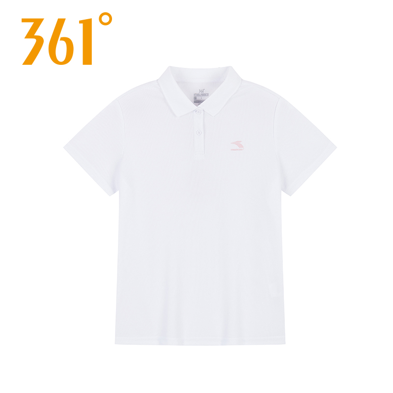 361翻领运动t恤女polo衫2025夏季工装361度休闲上衣白色透气短袖