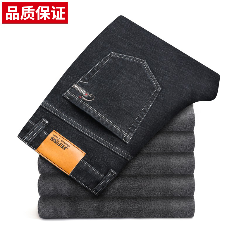 新款弹力秋冬款牛仔裤男士加绒加厚休闲宽松直筒长裤子男裤秋冬季