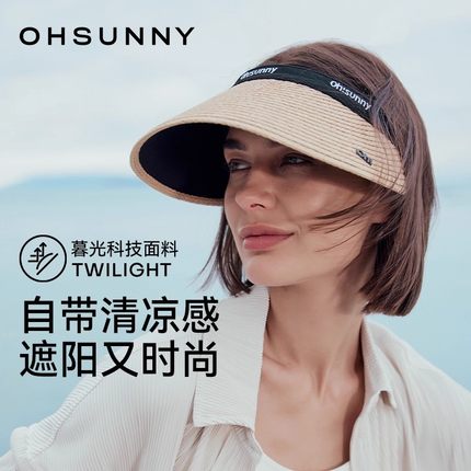 ohsunny防晒草帽女防紫外线太阳帽度假超大帽檐空顶遮阳草编帽子